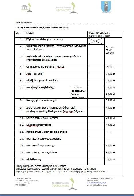 Ruszają zapisy na kolejny rok zajęć Uniwersytetu Trzeciego Wieku w Starym Sączu. Deklaracje uczestnictwa można już składać w Urzędzie Miejskim (Batorego 25).