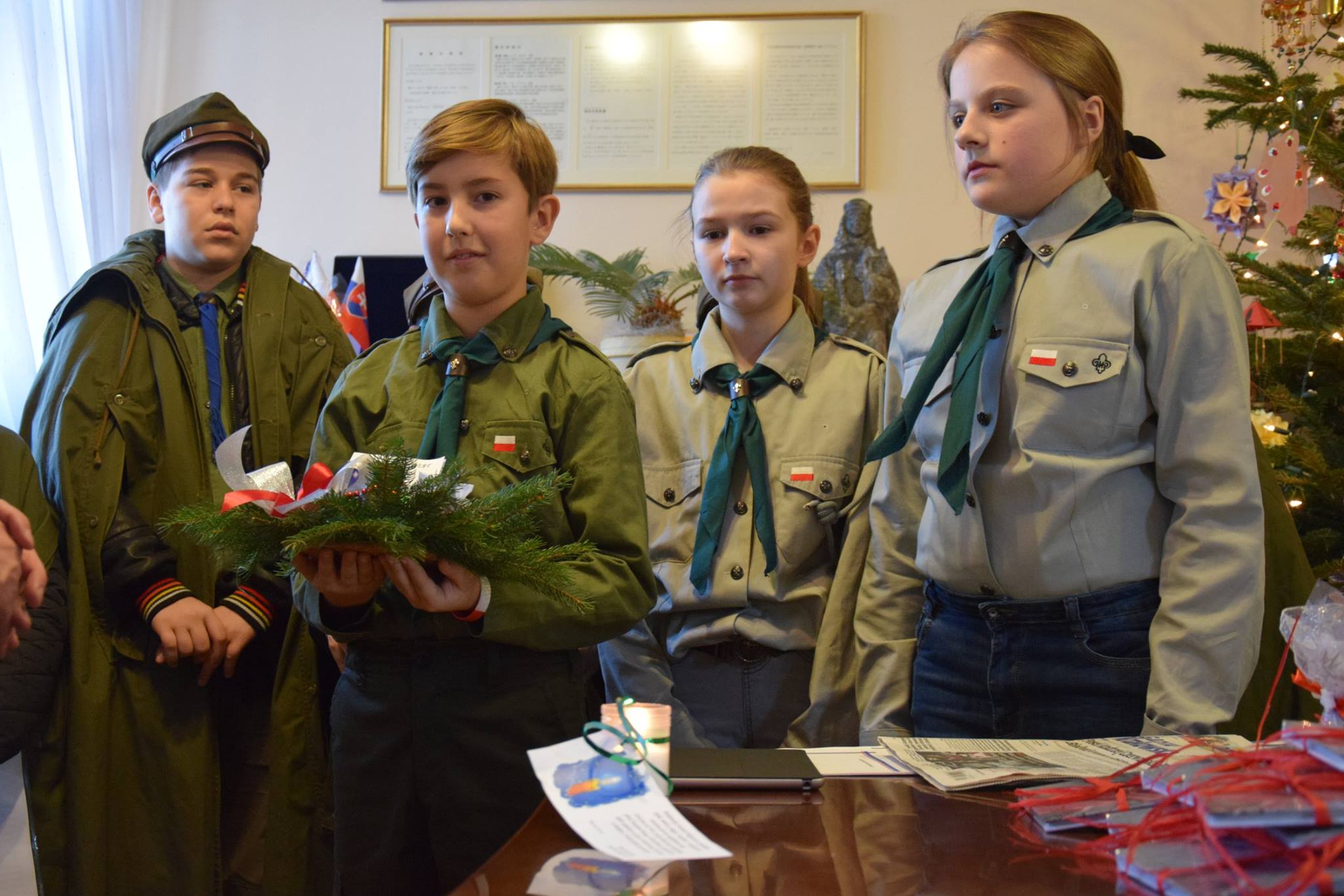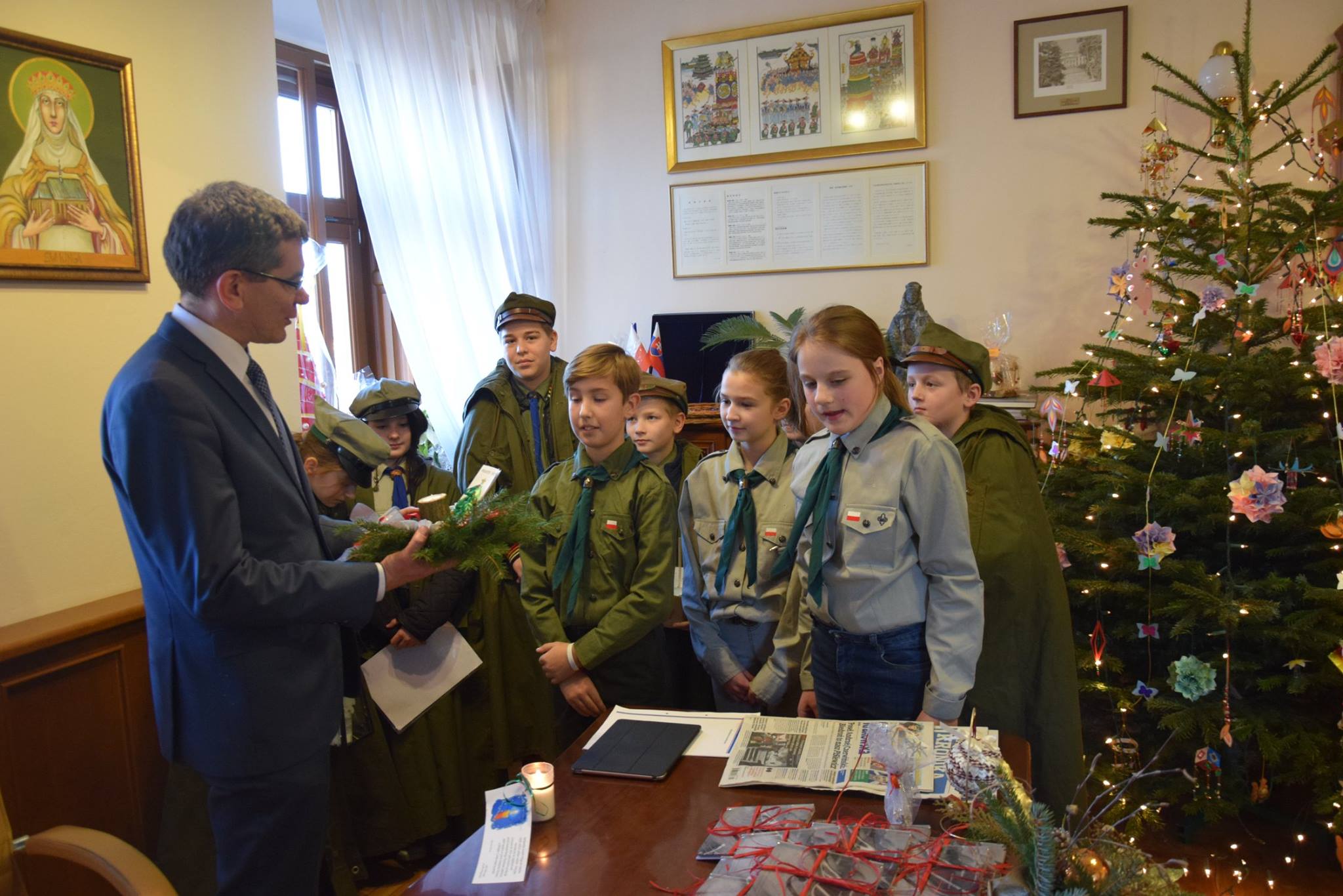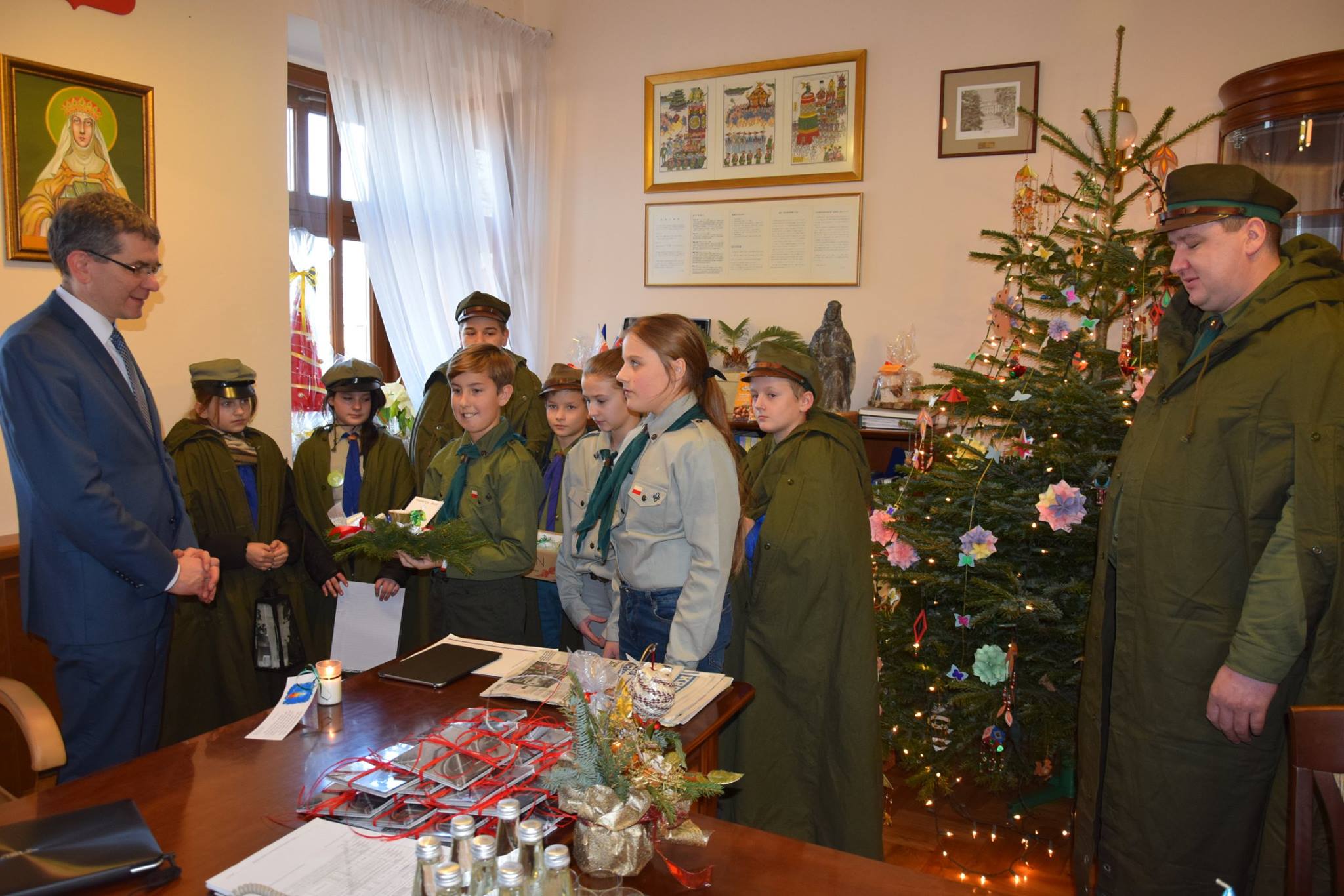 Harcerze z 5NDH „Sokoły” przy Szkole Podstawowej nr 1 w Starym Sączu i z tworzącej się drużyny „Wilków” z Popowic, podzielili się betlejemskim światłem pokoju z burmistrzem Jackiem Lelkiem.
