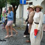 Drugi Dzień Jarmarku rozpoczął się, od tradycyjnego przemarszu korowodu historycznego ulicami miasta. Korowód poprowadzili rycerze a tworzyli go głównie samorządowcy z burmistrzem Jackiem Lelkiem, zastępcą Kazimierzem Gizickim, przewodniczącą Rady Miejskiej Ewą Zielińską i radnymi Rady Miejskiej na czele.