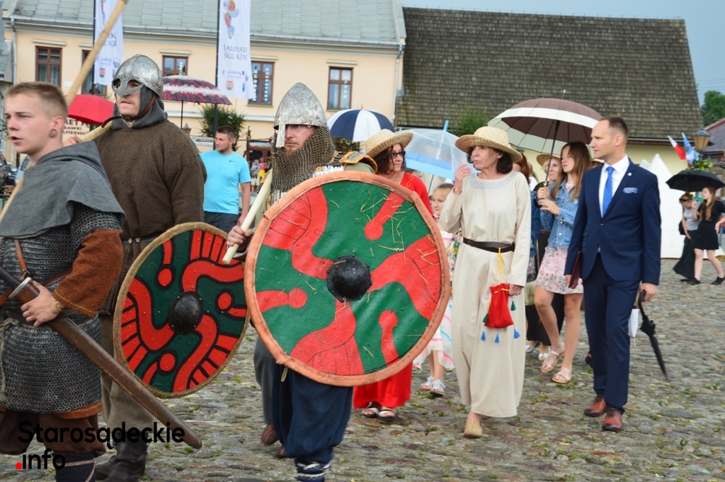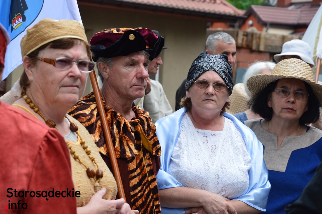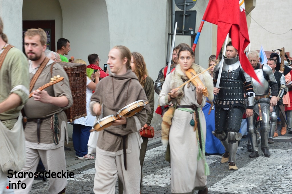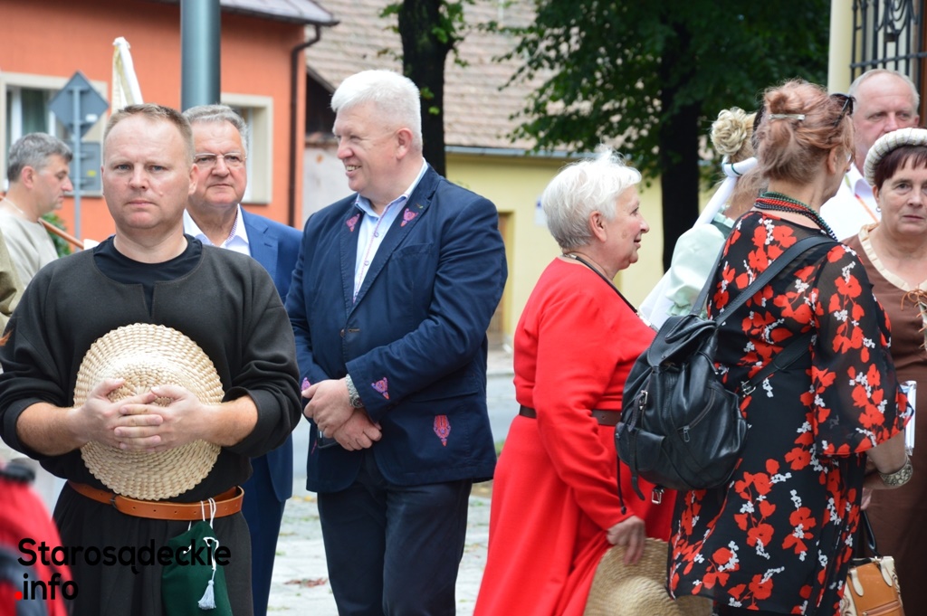 Drugi Dzień Jarmarku rozpoczął się, od tradycyjnego przemarszu korowodu historycznego ulicami miasta. Korowód poprowadzili rycerze a tworzyli go głównie samorządowcy z burmistrzem Jackiem Lelkiem, zastępcą Kazimierzem Gizickim, przewodniczącą Rady Miejskiej Ewą Zielińską i radnymi Rady Miejskiej na czele.