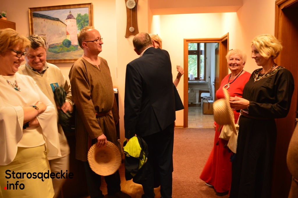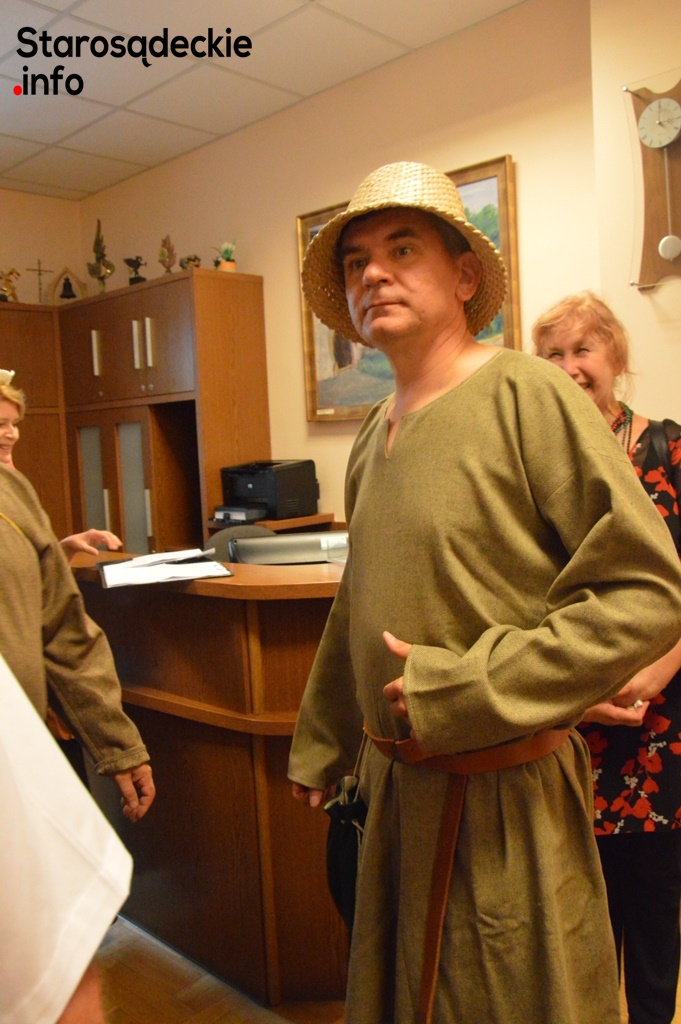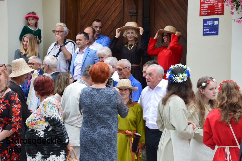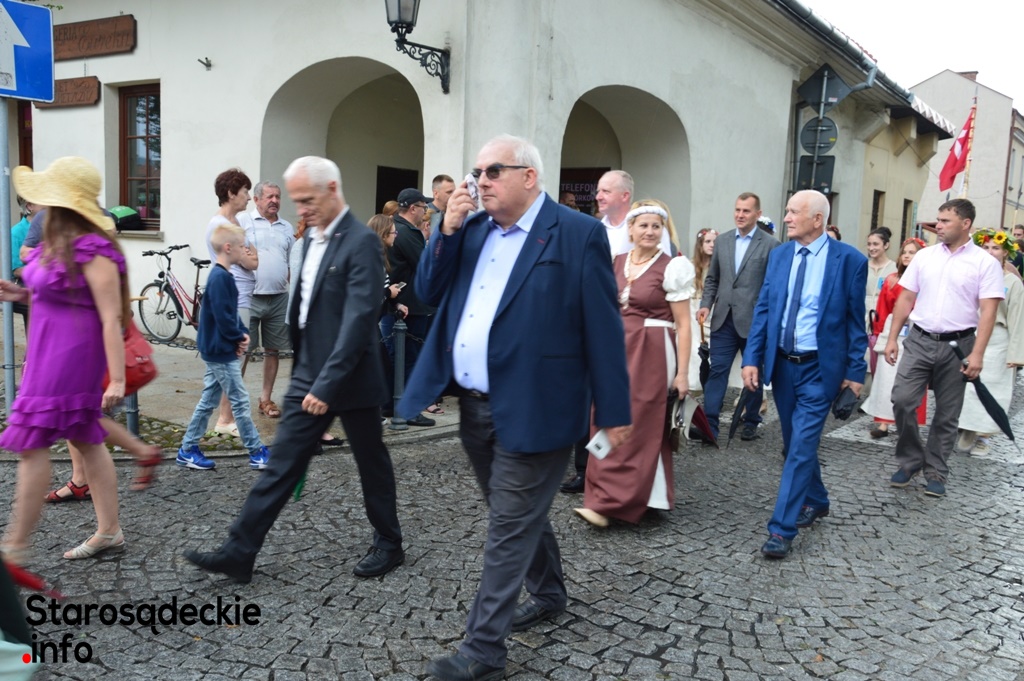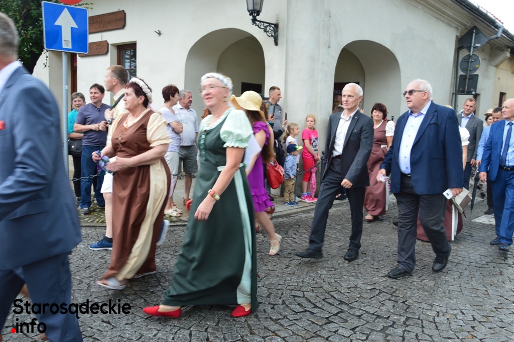 Drugi Dzień Jarmarku rozpoczął się, od tradycyjnego przemarszu korowodu historycznego ulicami miasta. Korowód poprowadzili rycerze a tworzyli go głównie samorządowcy z burmistrzem Jackiem Lelkiem, zastępcą Kazimierzem Gizickim, przewodniczącą Rady Miejskiej Ewą Zielińską i radnymi Rady Miejskiej na czele.