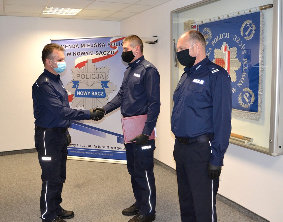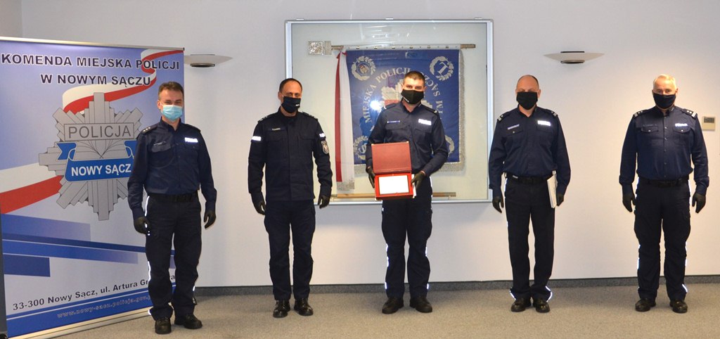W spotkaniu wzięli udział również Zastępcy Komendanta – mł. insp. Adam Bukański i kom. Zbigniew Zacher oraz bezpośredni przełożony wyróżnionego funkcjonariusza, Komendant Komisariatu Policji w Starym Sączu podinsp. Krzysztof Pawlak.