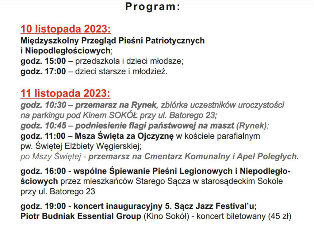 Starosądeckie Obchody Odzyskania Niepodległości. PROGRAM