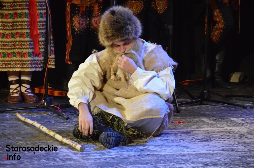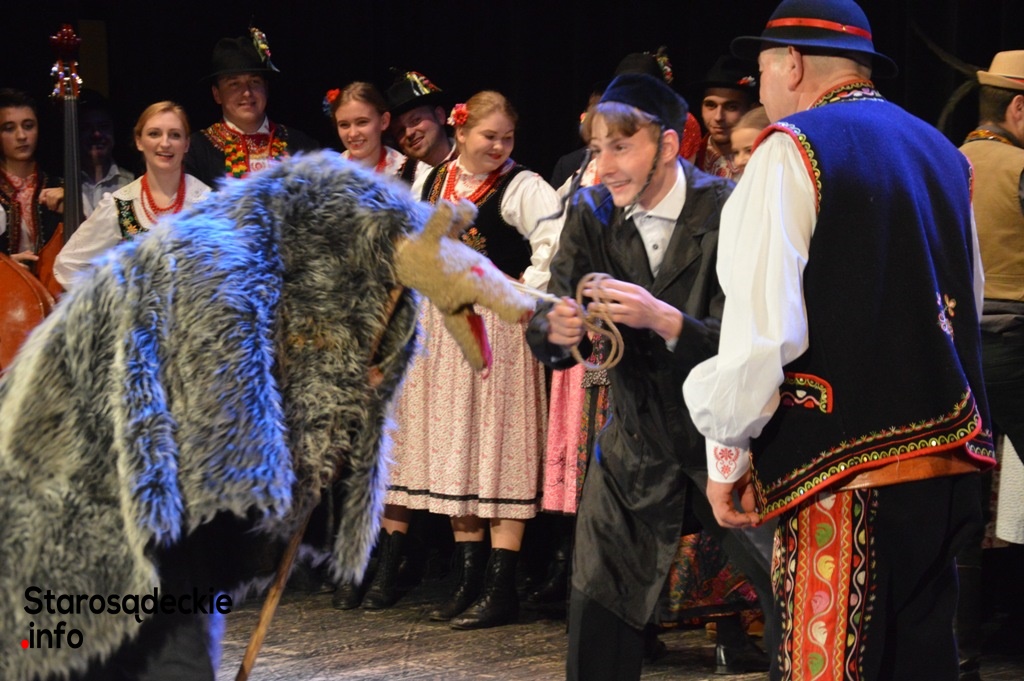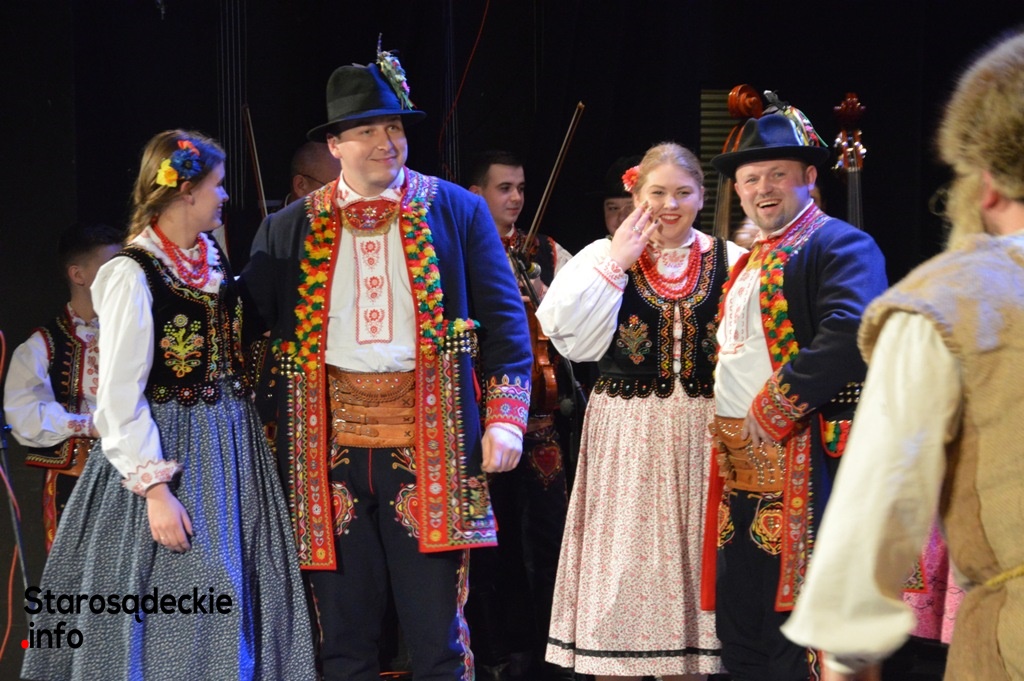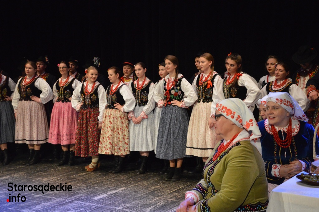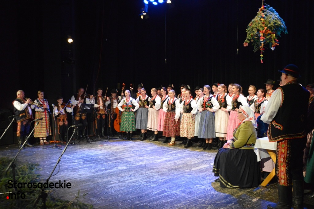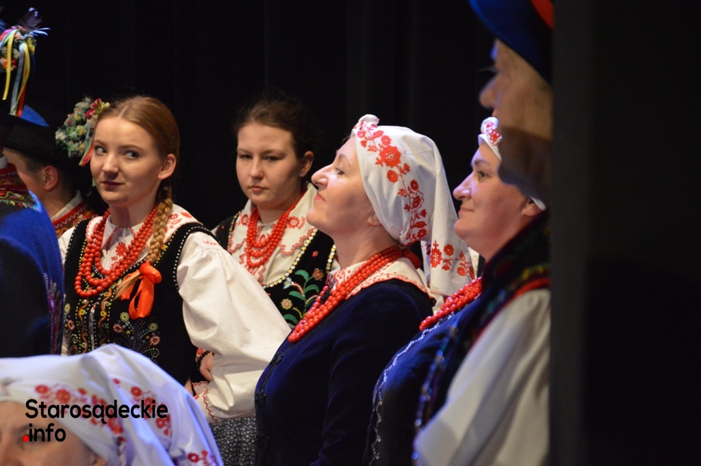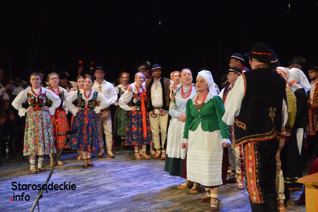 To był niezwykły, sobotni wieczór z kolędą. Zespół Regionalny Starosądeczanie oraz Dziecięcy Zespół Regionalny „Spod Prehyby” ożywił bożonarodzeniowe oraz noworoczne tradycje chodzenia po kolędzie. Dawne odwiedzanie domów przez przebierańców zaprezentował w barwnym widowisku na scenie Sokoła. Można było posłuchać dawnych i współczesnych kolęd oraz pastorałek. Publiczność bawiła się znakomicie. Nagradzała wykonawców gromkimi brawami.