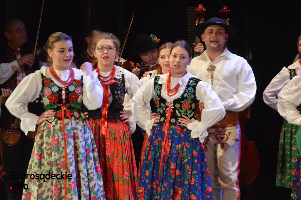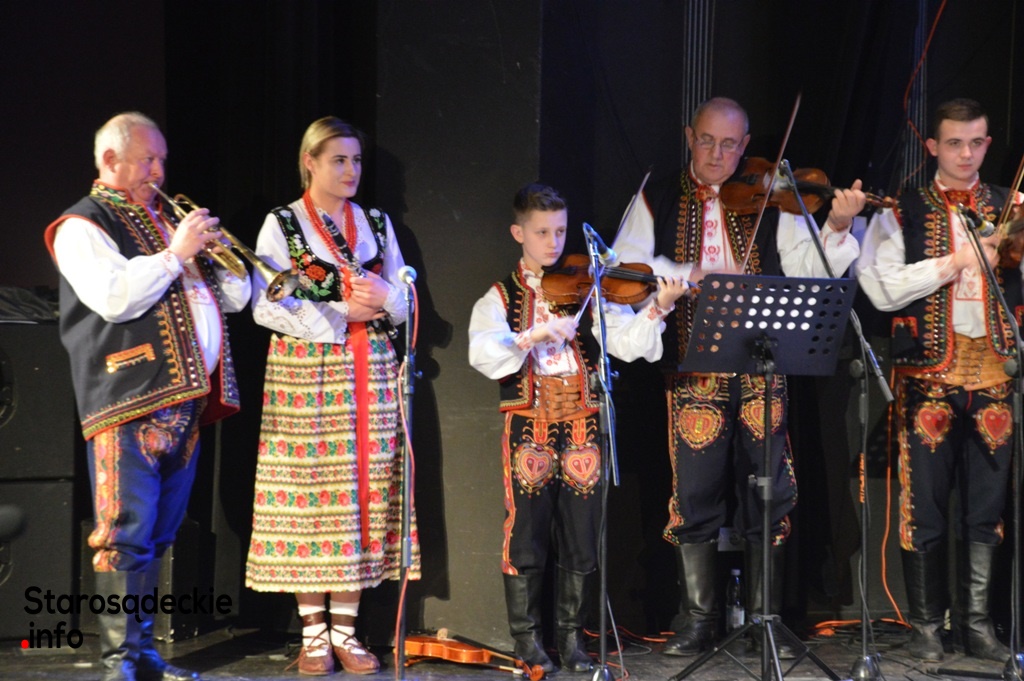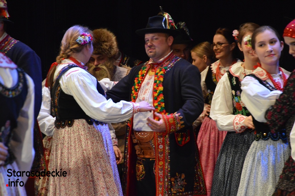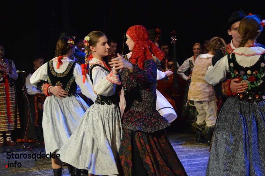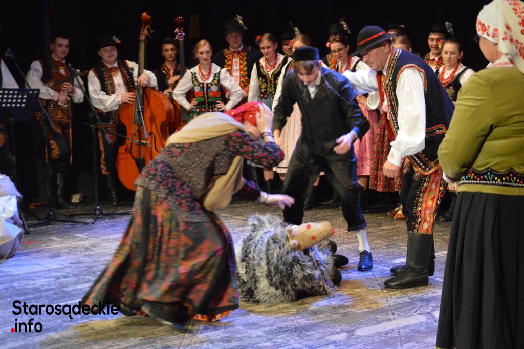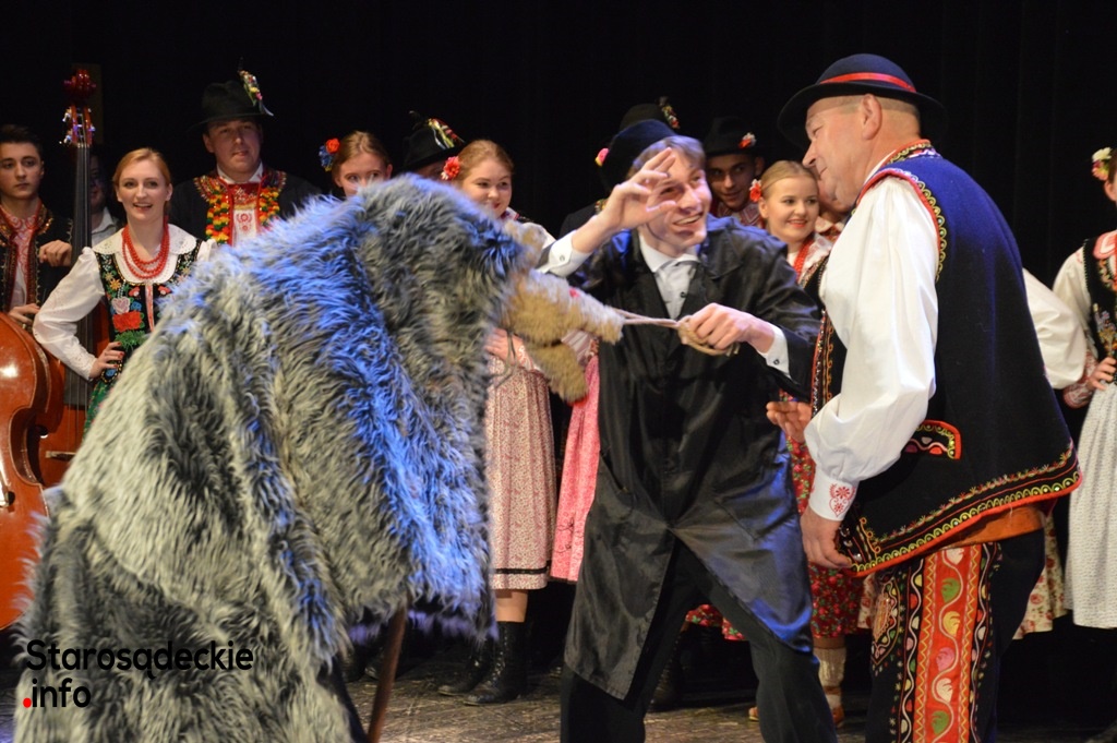 To był niezwykły, sobotni wieczór z kolędą. Zespół Regionalny Starosądeczanie oraz Dziecięcy Zespół Regionalny „Spod Prehyby” ożywił bożonarodzeniowe oraz noworoczne tradycje chodzenia po kolędzie. Dawne odwiedzanie domów przez przebierańców zaprezentował w barwnym widowisku na scenie Sokoła. Można było posłuchać dawnych i współczesnych kolęd oraz pastorałek. Publiczność bawiła się znakomicie. Nagradzała wykonawców gromkimi brawami.