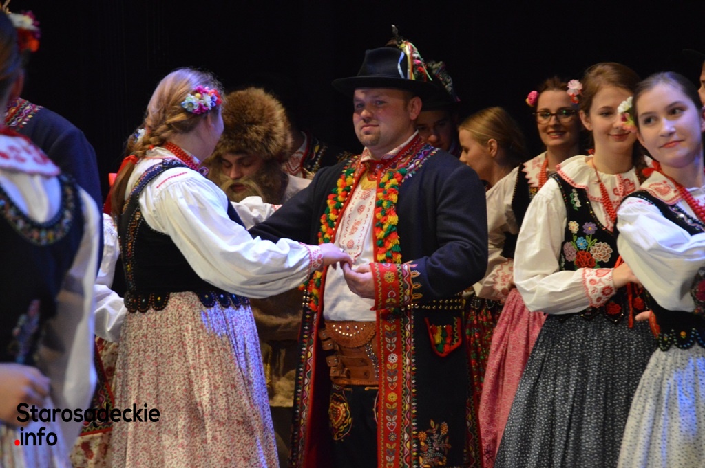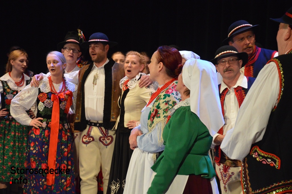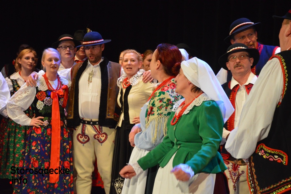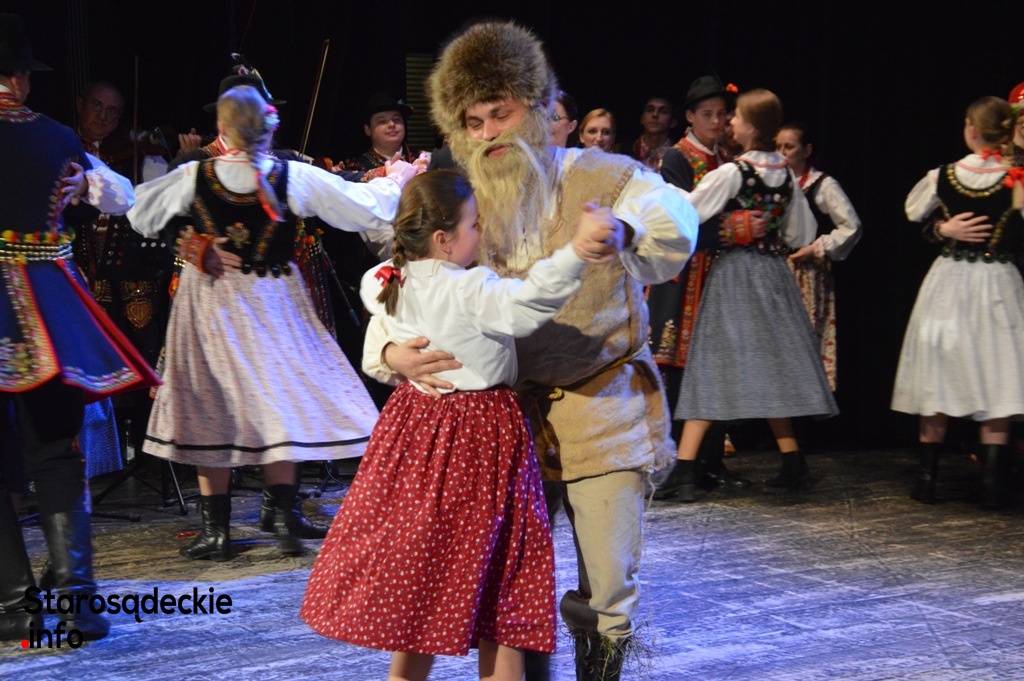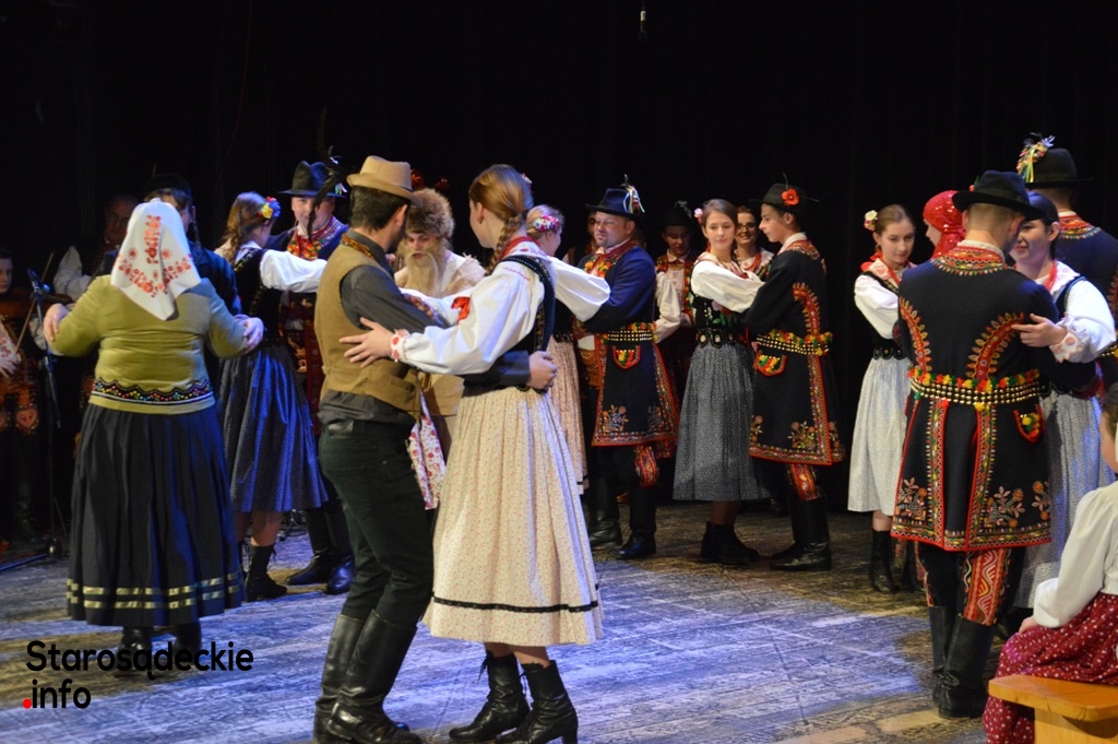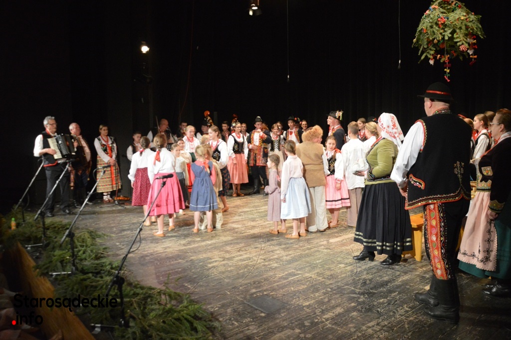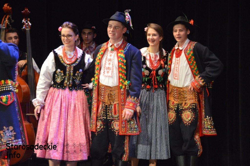 To był niezwykły, sobotni wieczór z kolędą. Zespół Regionalny Starosądeczanie oraz Dziecięcy Zespół Regionalny „Spod Prehyby” ożywił bożonarodzeniowe oraz noworoczne tradycje chodzenia po kolędzie. Dawne odwiedzanie domów przez przebierańców zaprezentował w barwnym widowisku na scenie Sokoła. Można było posłuchać dawnych i współczesnych kolęd oraz pastorałek. Publiczność bawiła się znakomicie. Nagradzała wykonawców gromkimi brawami.
