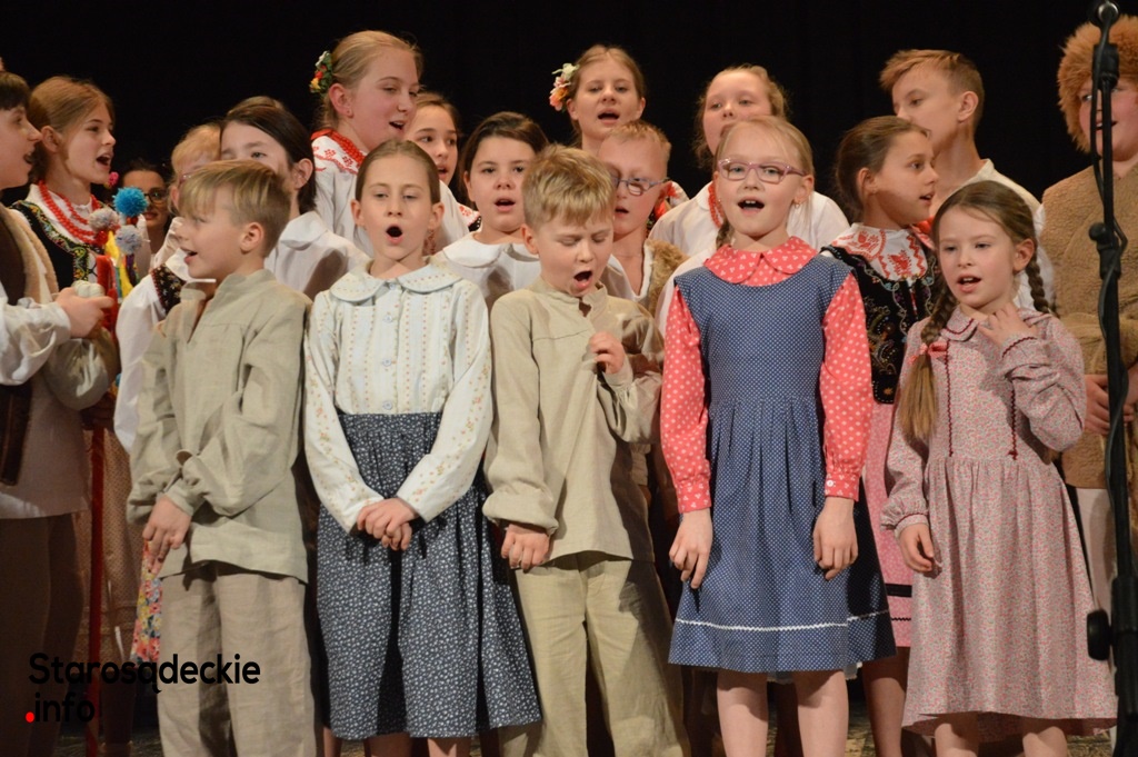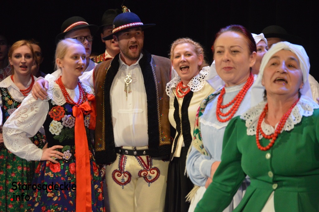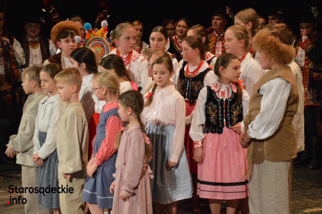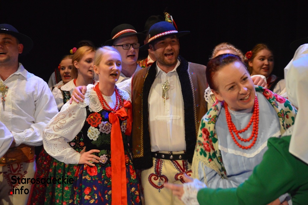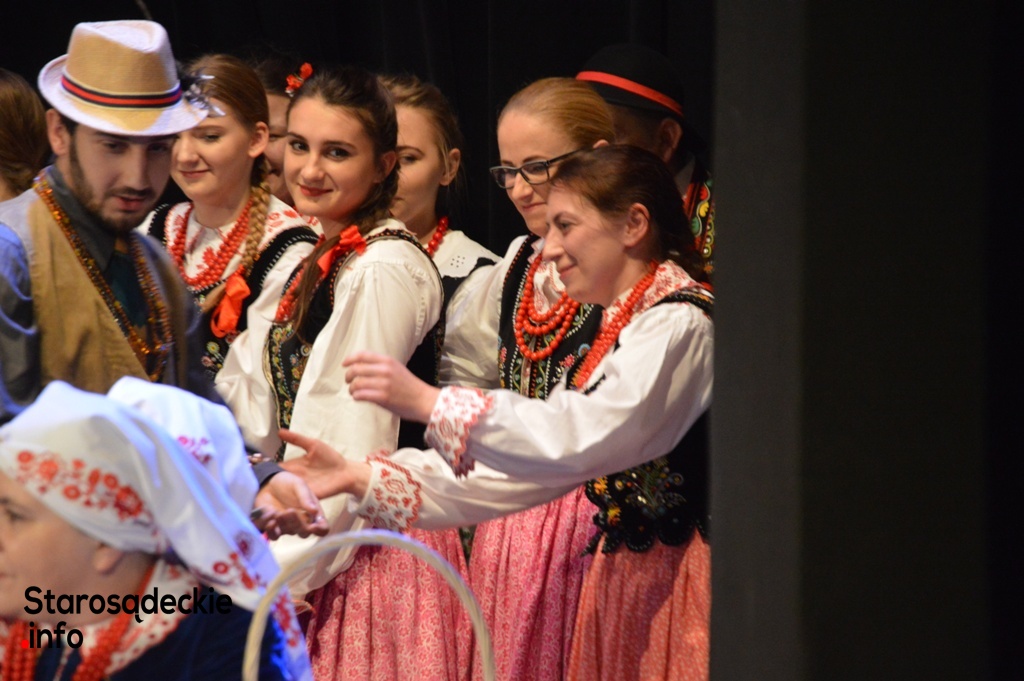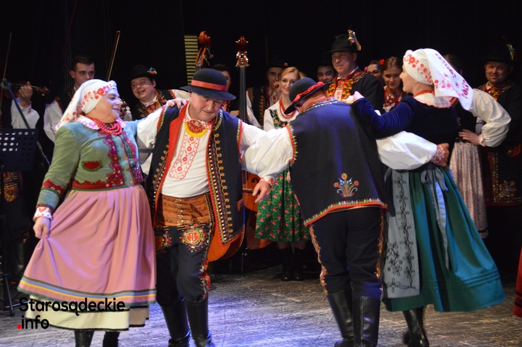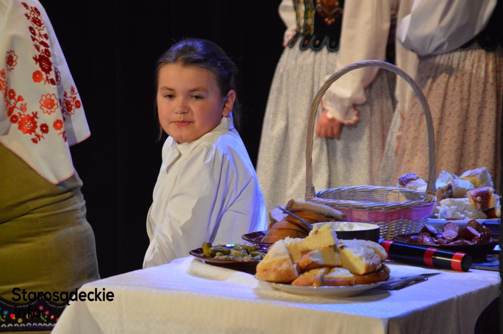 To był niezwykły, sobotni wieczór z kolędą. Zespół Regionalny Starosądeczanie oraz Dziecięcy Zespół Regionalny „Spod Prehyby” ożywił bożonarodzeniowe oraz noworoczne tradycje chodzenia po kolędzie. Dawne odwiedzanie domów przez przebierańców zaprezentował w barwnym widowisku na scenie Sokoła. Można było posłuchać dawnych i współczesnych kolęd oraz pastorałek. Publiczność bawiła się znakomicie. Nagradzała wykonawców gromkimi brawami.