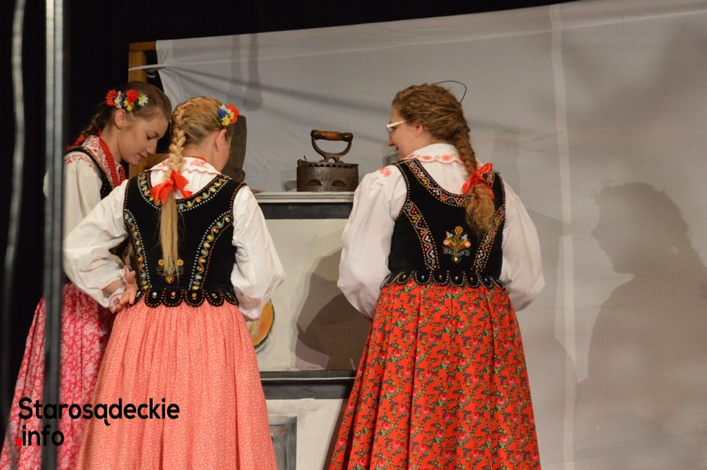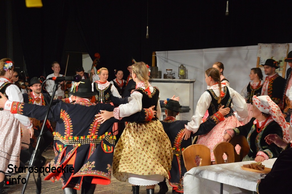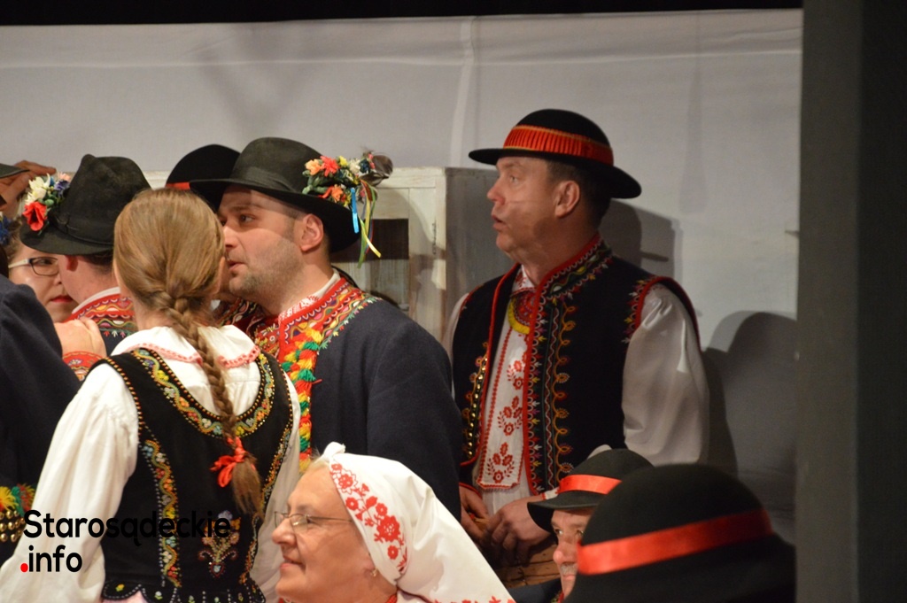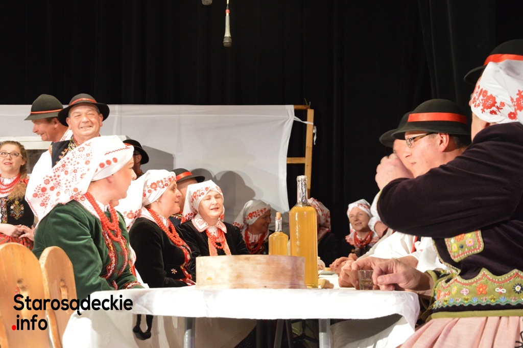 Zespół Regionalny Starosądeczanie i Zespół Góralski Młode Podhale zaprezentowali wczoraj w Sokole, odchodzące w mrok historii, a tak istotne kiedyś i ważne dla wiejskiej społeczności, obrzędy i zwyczaje. Ten koloryt oraz pełne humoru dialogi publiczność nagrodziła gromkimi brawami. To dowód, że zespół po raz kolejny pokazał wysoki poziom artystyczny.