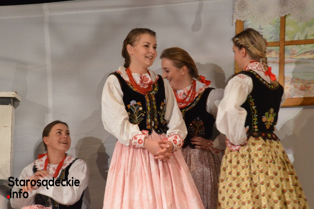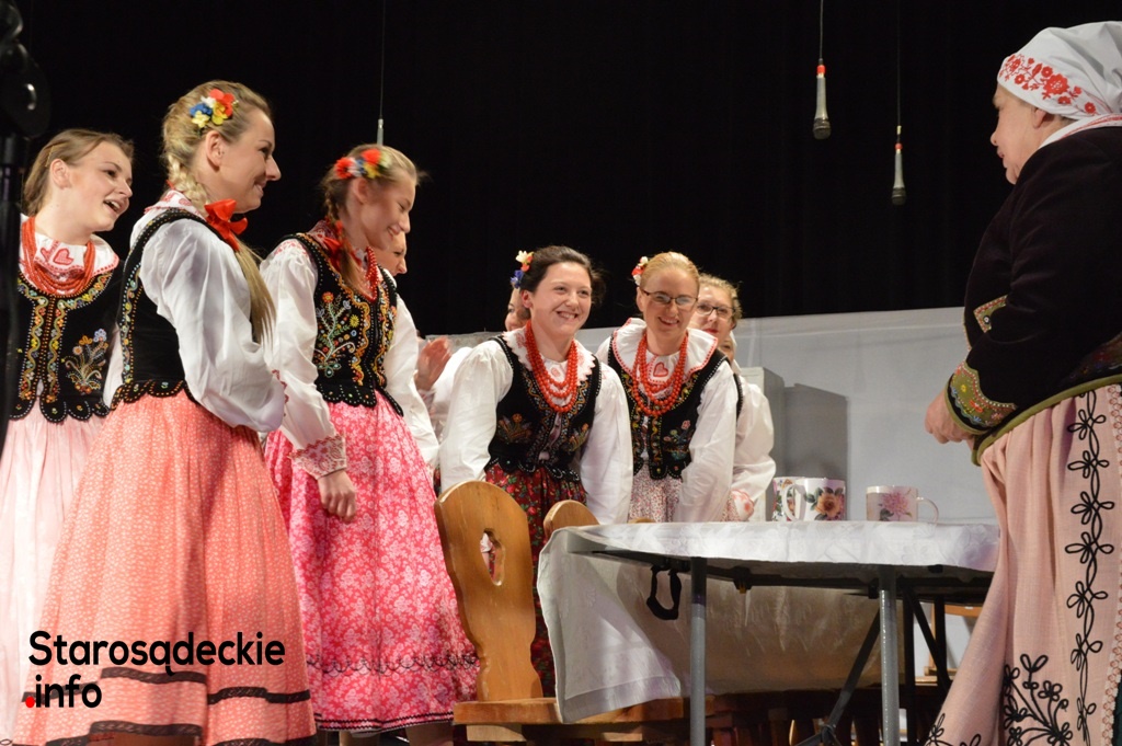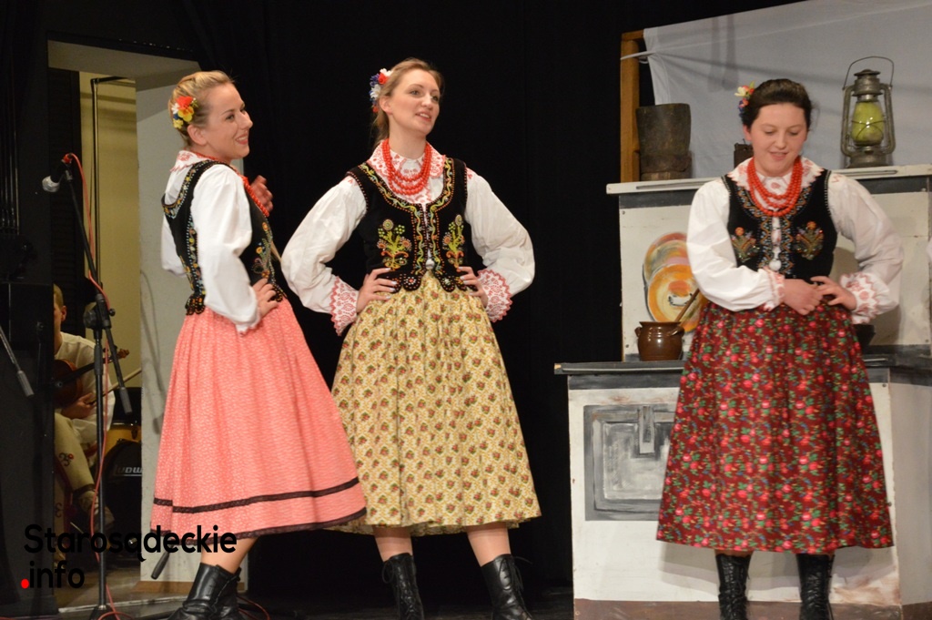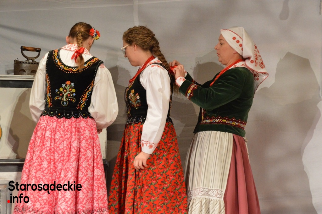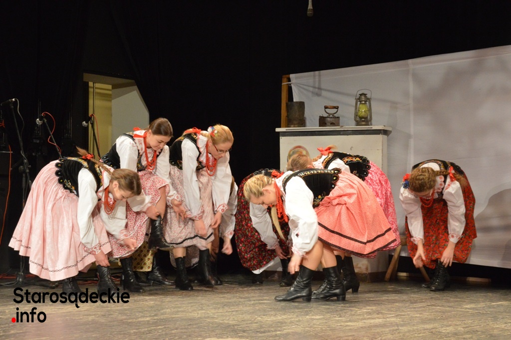 Zespół Regionalny Starosądeczanie i Zespół Góralski Młode Podhale zaprezentowali wczoraj w Sokole, odchodzące w mrok historii, a tak istotne kiedyś i ważne dla wiejskiej społeczności, obrzędy i zwyczaje. Ten koloryt oraz pełne humoru dialogi publiczność nagrodziła gromkimi brawami. To dowód, że zespół po raz kolejny pokazał wysoki poziom artystyczny.