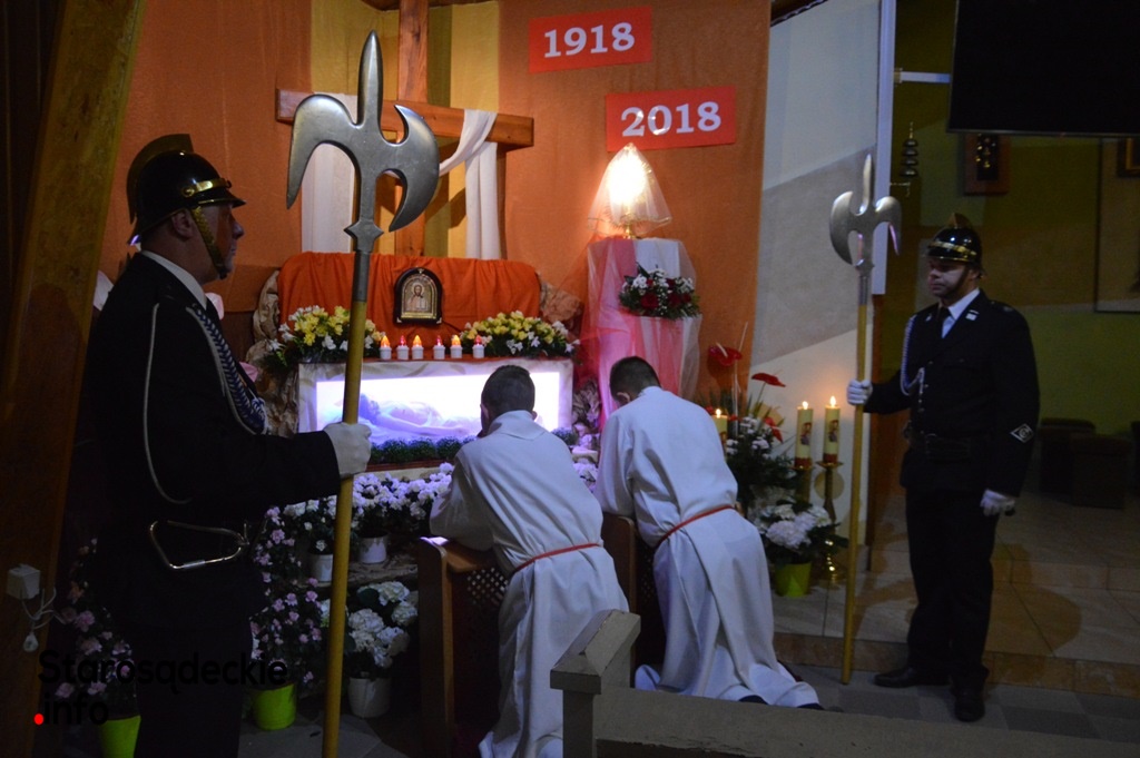 Od Wielkiego Piątku starosądeczanie modlą się i czuwają przy grobach pańskich w kościołach. Każdy z nich jest inny. Bez względu na formę każdy Grób Pański ma jednak to samo przesłanie.Wartę pełnią strażacy z miejscowych jednostek OSP, rycerze oraz harcerze.