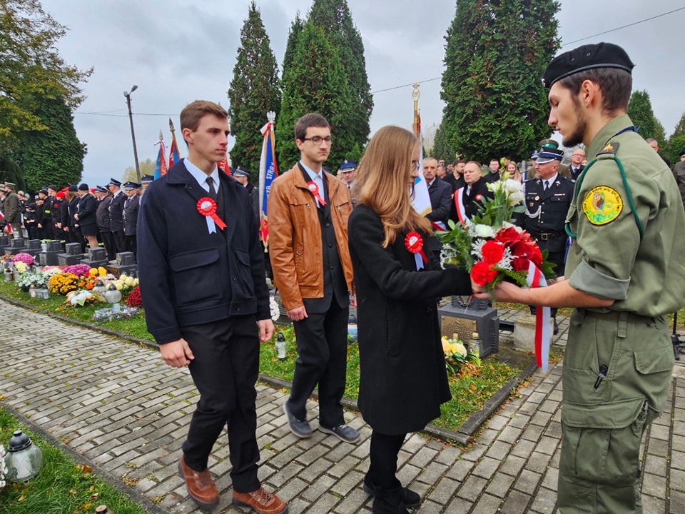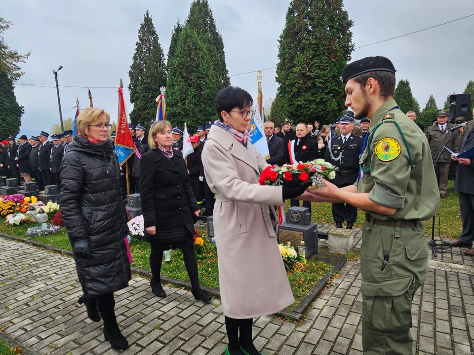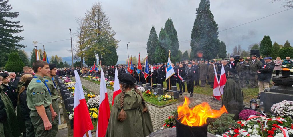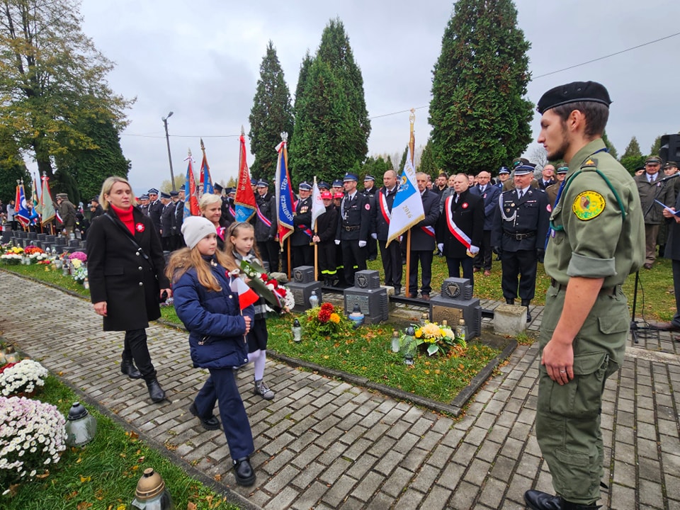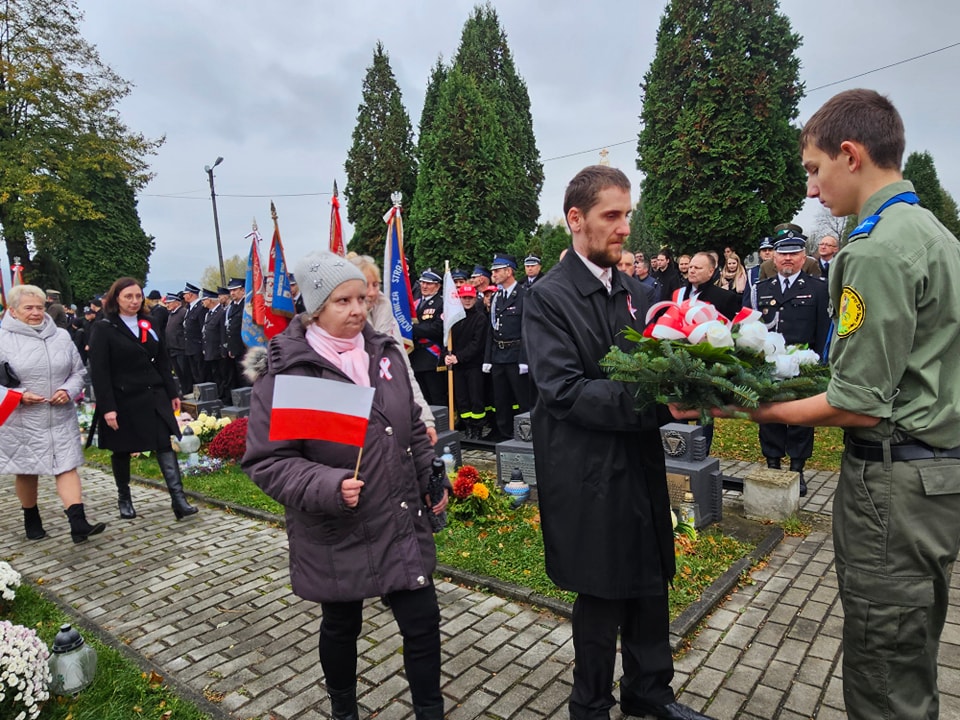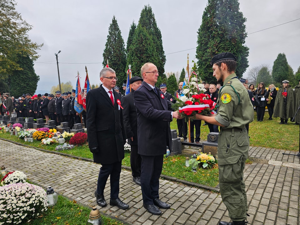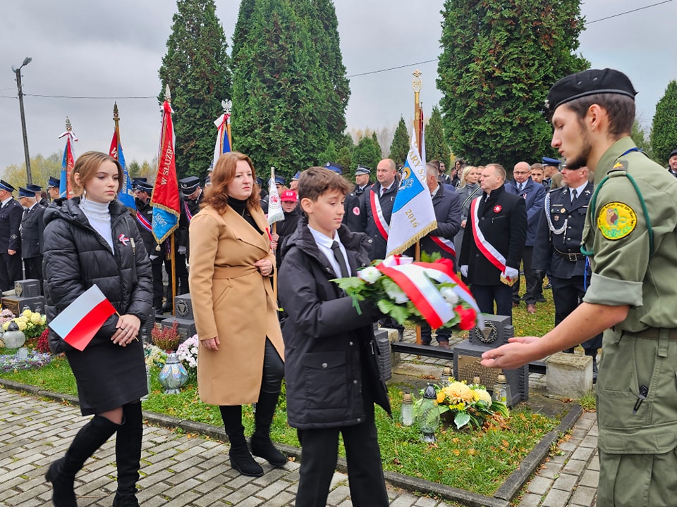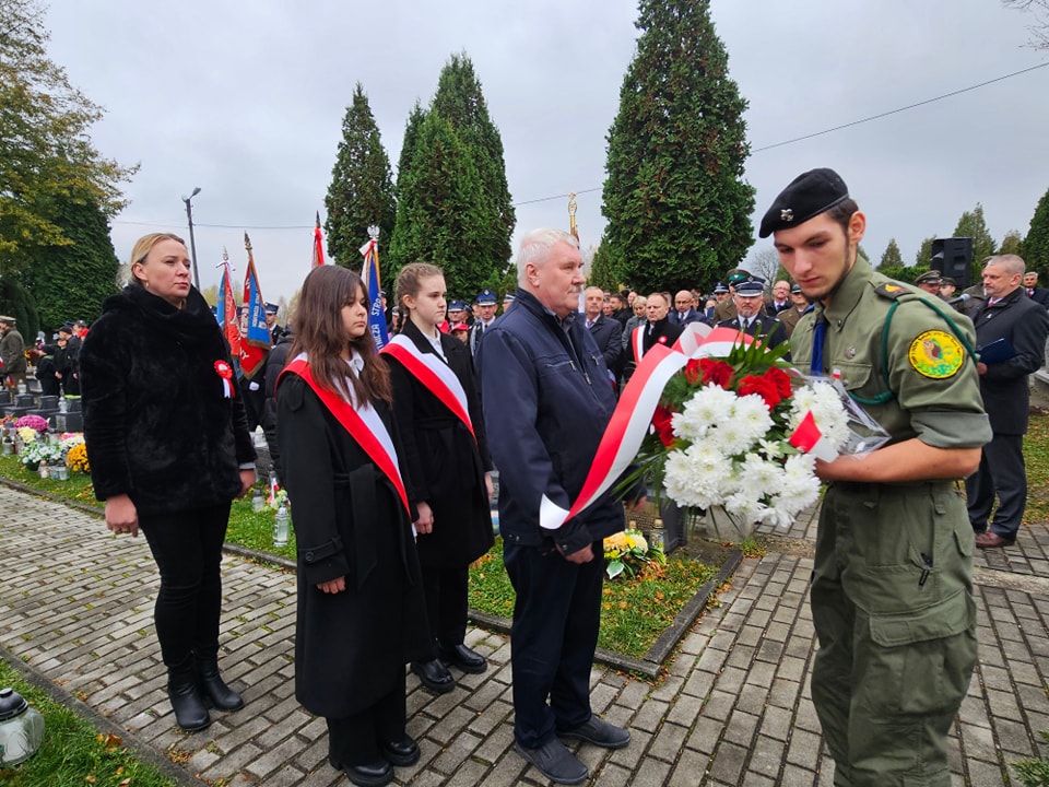 Na cmentarzu komunalnym odegrana została pieśń patriotyczna Rota, następnie ks. proboszcz Marek Tabor poprowadził modlitwę za poległych w obronie ojczyzny. Starszy Sierżant Sztab. Konrad Kamiński z Karpackiego Oddziału Straży Granicznej w Nowym Sączu odczytał Apel Poległych.