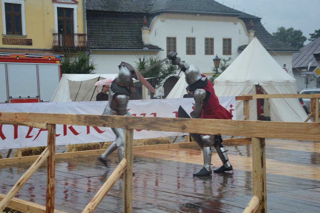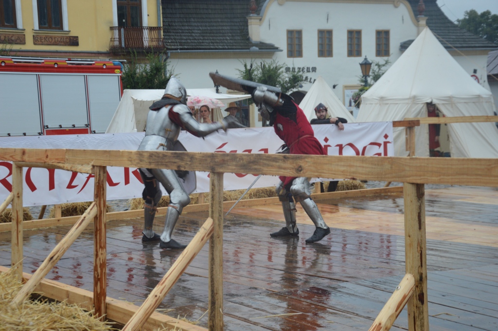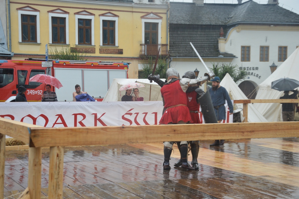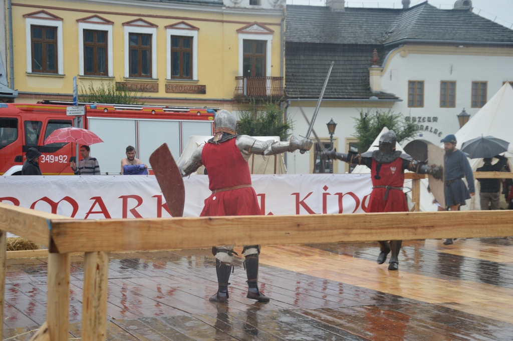 Mamy nieodparte wrażenie, że deszcz stał się stałym punktem programu podczas odbywających się od 3 lat Jarmarków św. Kingi w Starym Sączu. Podobnie było i w tym roku. Po raz kolejny Organizatorów zaskoczyła gwałtowna ulewa, ale impreza nie została przerwana. Dzielni rycerze stanęli w turniejowe szranki walcząc o Pierścień św. Kingi. Na płycie rynku stanęły kramy z rękodziełem i regionalnymi smakołykami. Tuż obok swoje namioty rozbili średniowieczni rycerze, a nawet kat. Dla uczestników Jarmarku przygotowano szereg atrakcji: pokazy walk rycerskich, konkursy z nagrodami dla najmłodszych, koncert grupy Viatores oraz teatr ognia w wykonaniu Leśnego Licha.