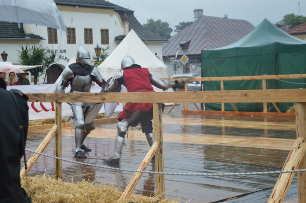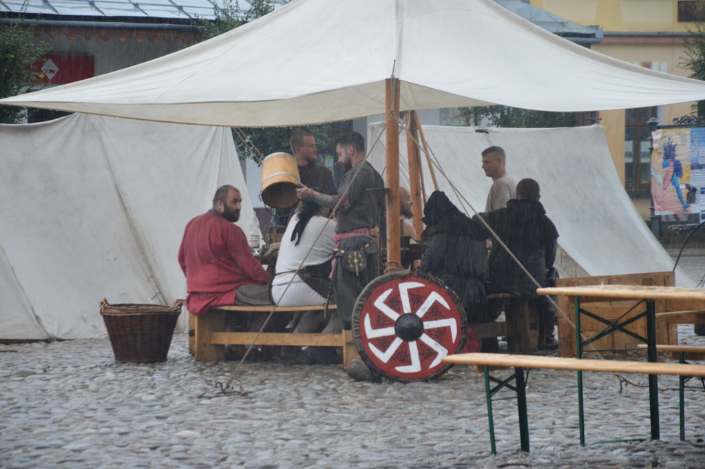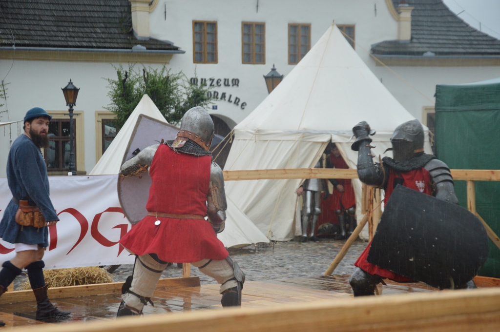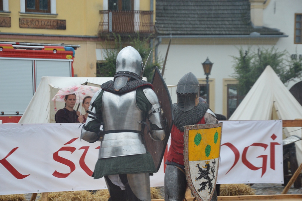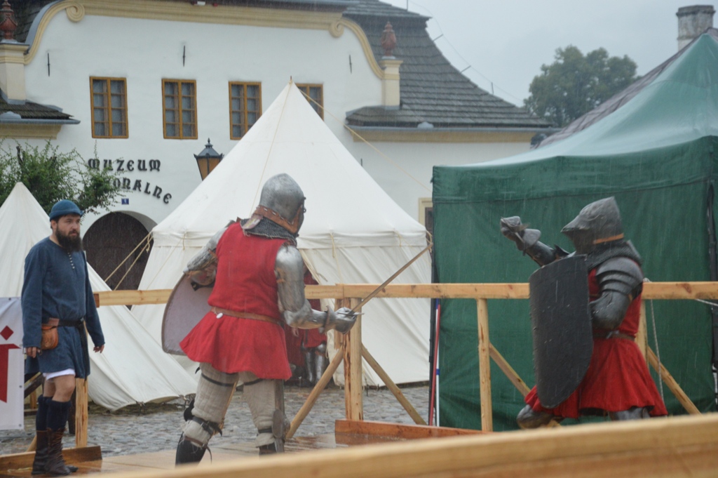 Mamy nieodparte wrażenie, że deszcz stał się stałym punktem programu podczas odbywających się od 3 lat Jarmarków św. Kingi w Starym Sączu. Podobnie było i w tym roku. Po raz kolejny Organizatorów zaskoczyła gwałtowna ulewa, ale impreza nie została przerwana. Dzielni rycerze stanęli w turniejowe szranki walcząc o Pierścień św. Kingi. Na płycie rynku stanęły kramy z rękodziełem i regionalnymi smakołykami. Tuż obok swoje namioty rozbili średniowieczni rycerze, a nawet kat. Dla uczestników Jarmarku przygotowano szereg atrakcji: pokazy walk rycerskich, konkursy z nagrodami dla najmłodszych, koncert grupy Viatores oraz teatr ognia w wykonaniu Leśnego Licha.