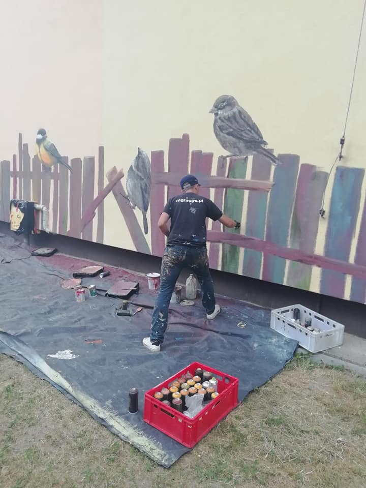 Mariusz Brodowski, znany jako grafficiarz Mgr Mors ma pracownię na osiedlu Słonecznym w Starym Sączu. Ponieważ lubi tworzyć w przyjemnym otoczeniu, postanowił zmienić to, co mu się nie podobało w dzielnicy. Ponad 2 lata temu zmalował komórki na śmieci a teraz elewację bloku.