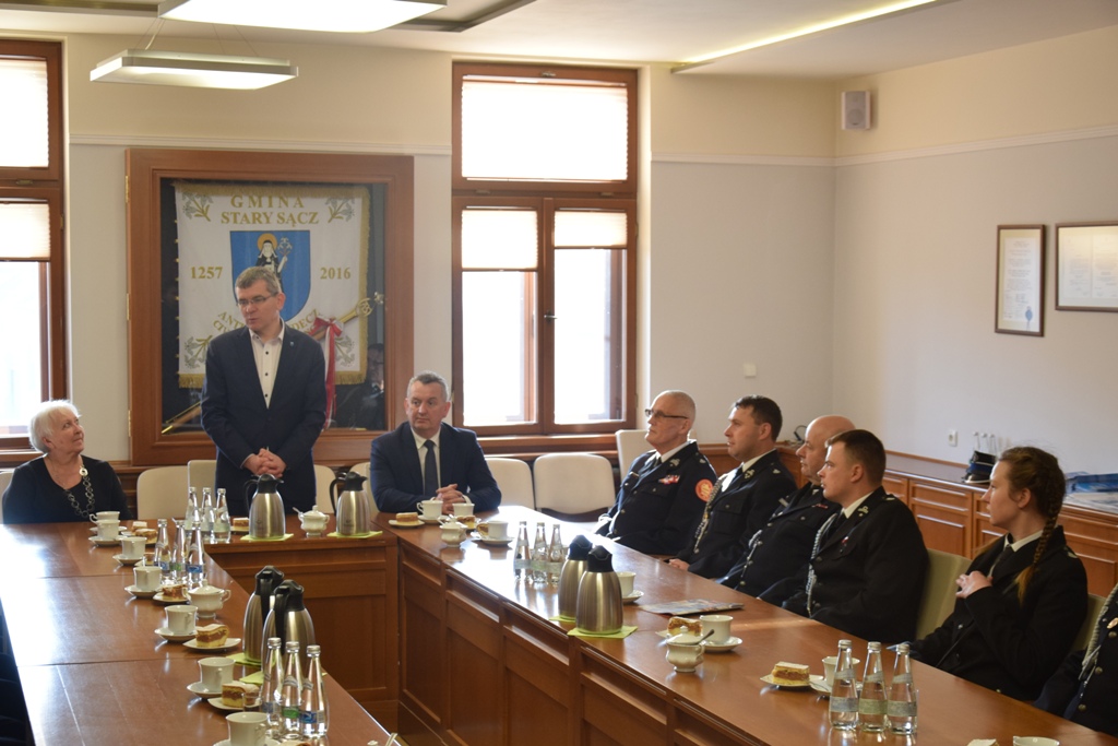 Sprzęt dla druhów ochotników przekazywał burmistrz Jacek Lelek, w asyście przewodniczącej Rady Miejskiej w Starym Sączu Ewy Zielińskiej i zastępcy burmistrza Kazimierza Gizickiego. Z pewnością będzie bardzo przydatny dobrze wyszkolonym i prężnie działającym strażakom w Gminie Stary Sącz.