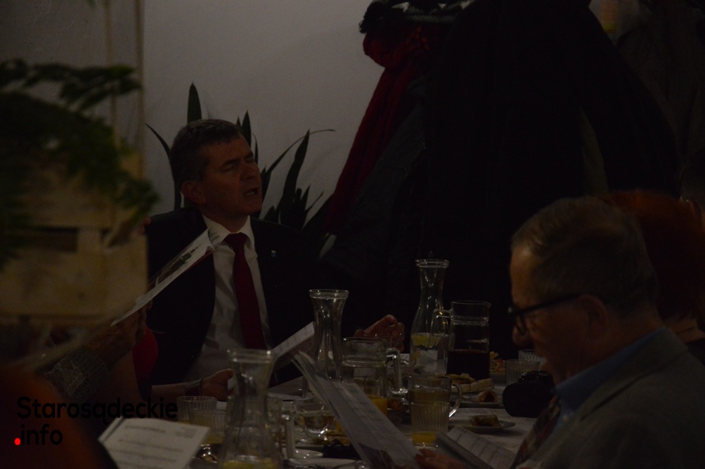 W uroczystym śpiewaniu wzięli udział samorządowcy: burmistrz Jacek Lelek z małżonką, dyrektor CKiS Wojciech Knapik z małżonką i przewodnicząca Rady Miejskiej Ewa Zielińska. Nie zabrakło radnej Julii Dziedzic i Marianny Trzebuniak.