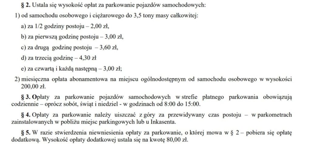 Pobór opłat za parkowanie odbywać się będzie codziennie –z wyłączeniem sobót, niedziel i świąt – w godzinach od 8:00 do 15:00, niezależnie od pory roku.