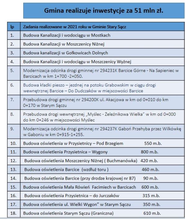 Stary Sącz realizuje inwestycje za 51 milionów złotych. Mimo kryzysu związanego z epidemią koronawairusa Gmina nie zwalnia tempa inwestycyjnego. Prace realizowane są na wielu frontach -w mieście i sołectwach.