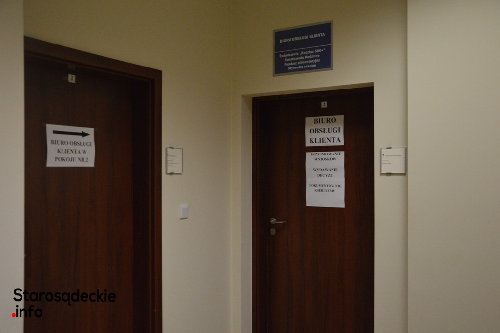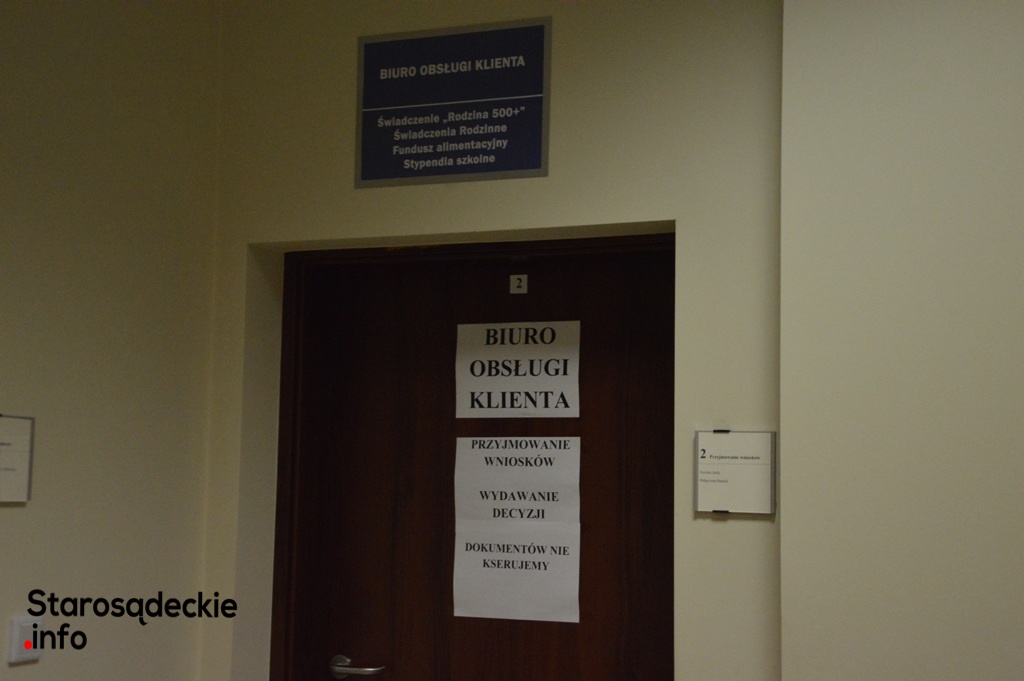 Obecnie w Ośrodku Pomocy Społecznej w Sekcji Świadczeń na Rzecz Rodziny (pomieszczenia na parterze) przyjmowane są wnioski o świadczenie wychowawcze „500 +”, świadczenia rodzinne oraz o świadczenie w ramach programu „Dobry Start 300+”.