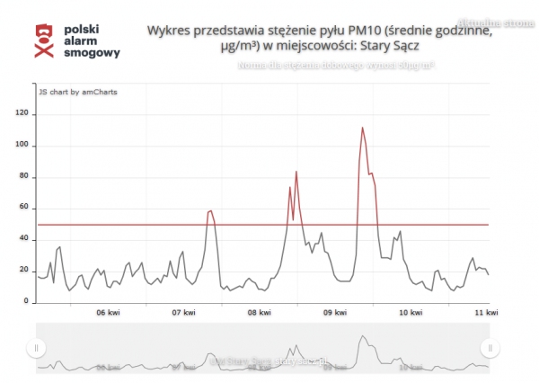 Drobny pył zawieszony PM10 jest mieszaniną substancji organicznych i nieorganicznych zawierającą substancje toksyczne, takie jak wielopierścieniowe węglowodory aromatyczne (m.in. benzo(a)piren, metale ciężkie oraz dioksyny i furany). Poziom dopuszczalny stężenia średniodobowego dla pyłu PM10 wynosi 50 µg/m3. Po zakończeniu badań i przeanalizowaniu danych zostanie sporządzony specjalny raport.