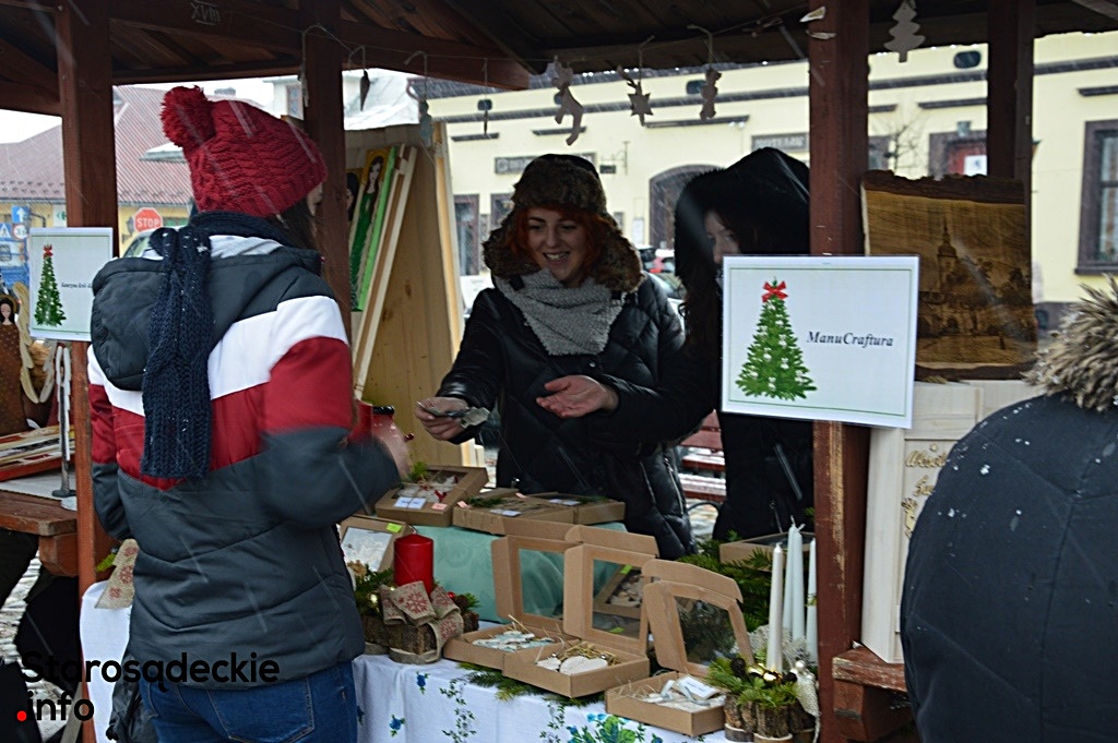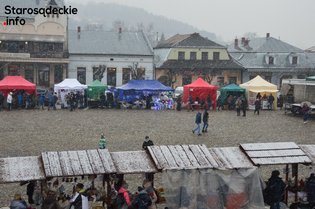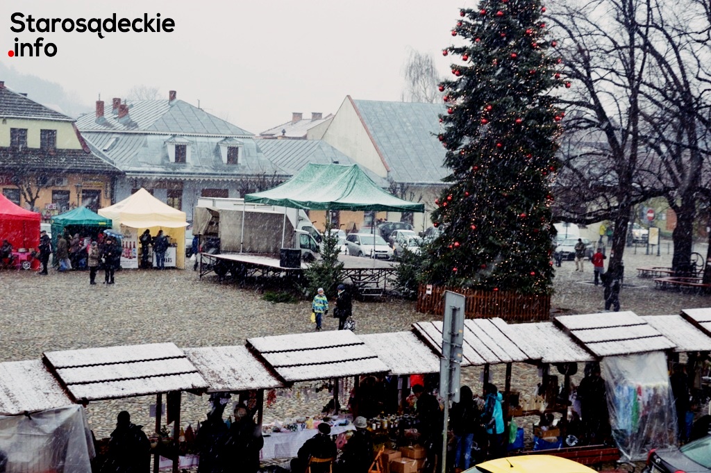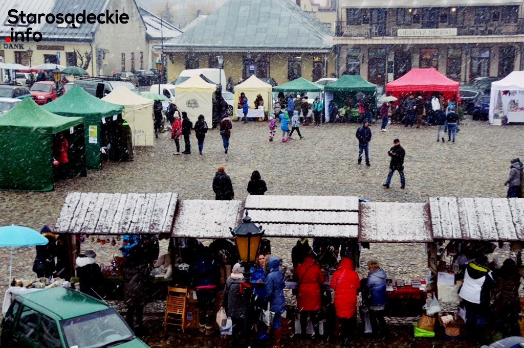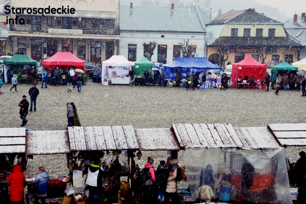 Już jest! Na starosądeckim Rynku stanęły rzędy straganów ze świątecznym rękodziełem, bombkami i choinkami oraz miodem i grzanym winem. Jarmark potrwa do godziny 17:00 a wszystkich mieszkańców czeka jeszcze wizyta św. Mikołaja i śnieżynki oraz występy młodych wokalistów i kolędowanie z Chórem Gospel.