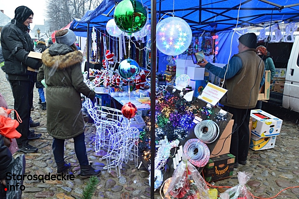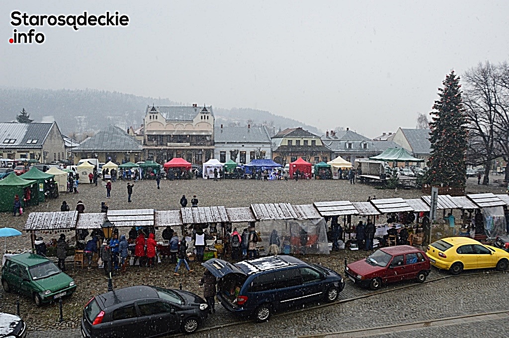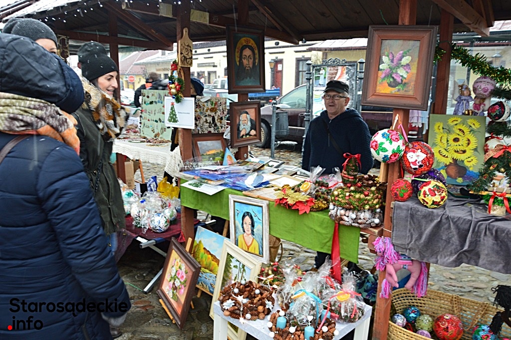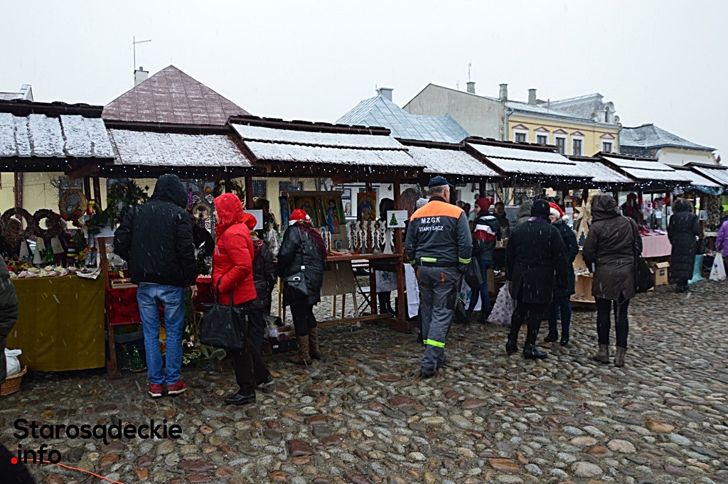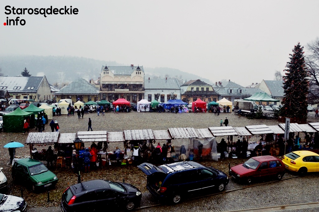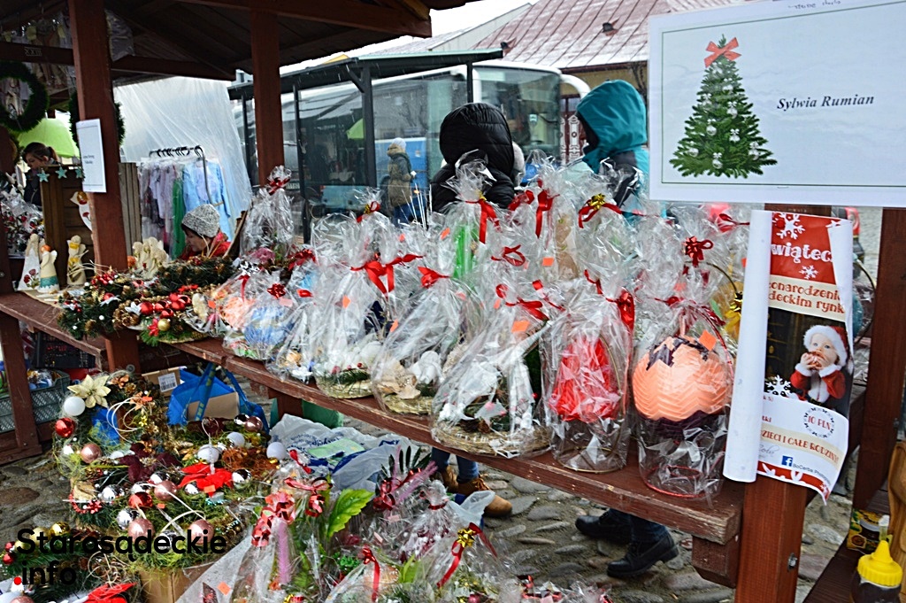 Już jest! Na starosądeckim Rynku stanęły rzędy straganów ze świątecznym rękodziełem, bombkami i choinkami oraz miodem i grzanym winem. Jarmark potrwa do godziny 17:00 a wszystkich mieszkańców czeka jeszcze wizyta św. Mikołaja i śnieżynki oraz występy młodych wokalistów i kolędowanie z Chórem Gospel.