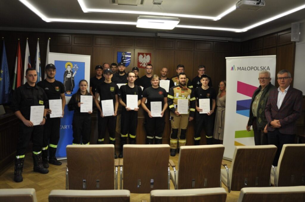 W ramach projektu pt. ,, Małopolskie OSP”, którego przedmiotem była pomoc finansowa z budżetu Województwa Małopolskiego w kwocie 10 000,00 zł gmina Stary Sącz zorganizowała Kurs Kwalifikowanej Pierwszej Pomocy dla 21 osób – strażaków ratowników z jednostek Ochotniczych Straży Pożarnych z terenu Gminy Stary Sącz ( tj. po 3 strażaków ratowników z jednostek OSP: Stary Sącz, Barcice, Gołkowice Górne, Przysietnica, Moszczenica Wyżna, Moszczenica Niżna, Gaboń).