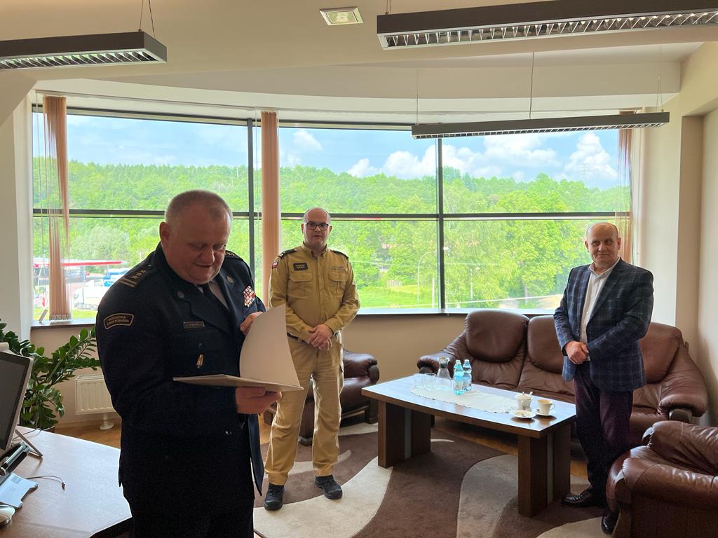 26 maja 2023 roku Komendant Miejski PSP spotkał się ze strażakami z Ochotniczej Straży Pożarnej w Podegrodziu, którzy uratowali życie mężczyzny.