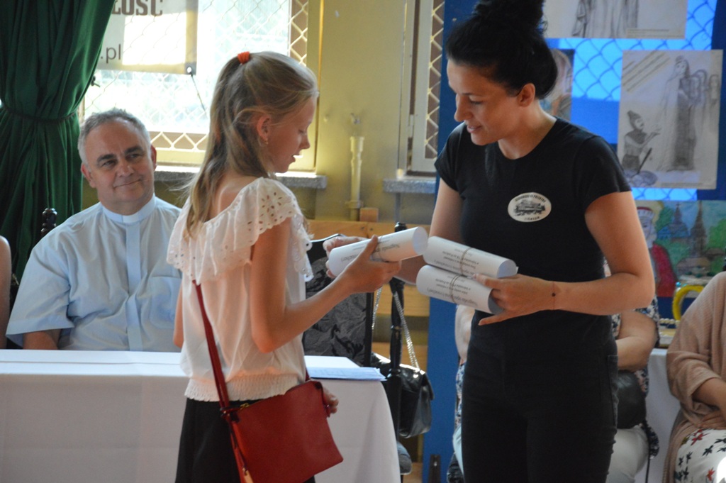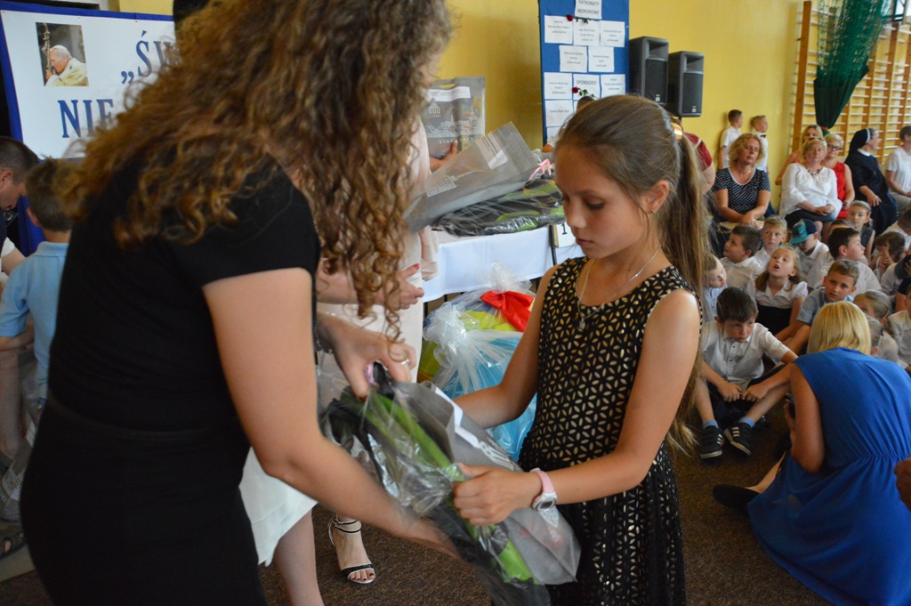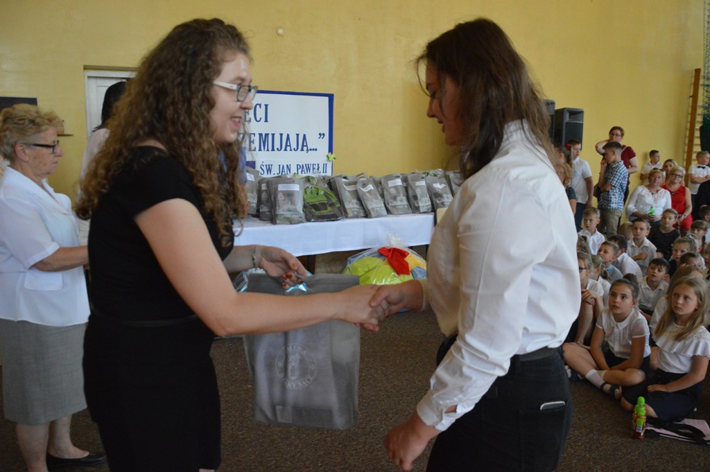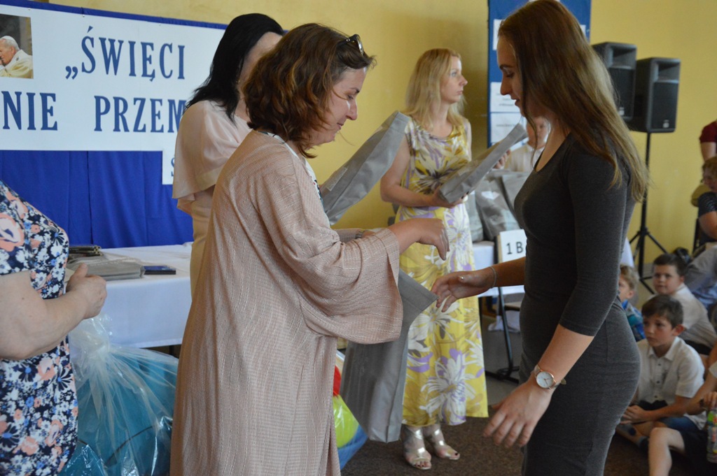 Wręczenie nagród i wyróżnień odbyło się 11 czerwca 2019 roku podczas uroczystości Święta Szkoły. Po Mszy św. nauczyciele, uczniowie, laureaci konkursów oraz goście obejrzeli „Balladynę” przygotowaną przez szkolny teatr NIM-NUL pod opieką Zofii Trzcińskiej i Elżbiety Mrówki. Następnie dyrekcja i zaproszeni goście obdarowali upominkami i okolicznościowymi dyplomami uczestników konkursów.