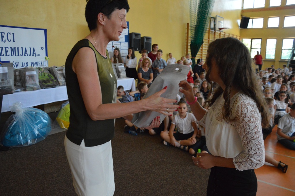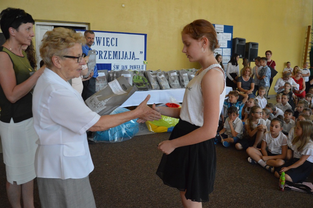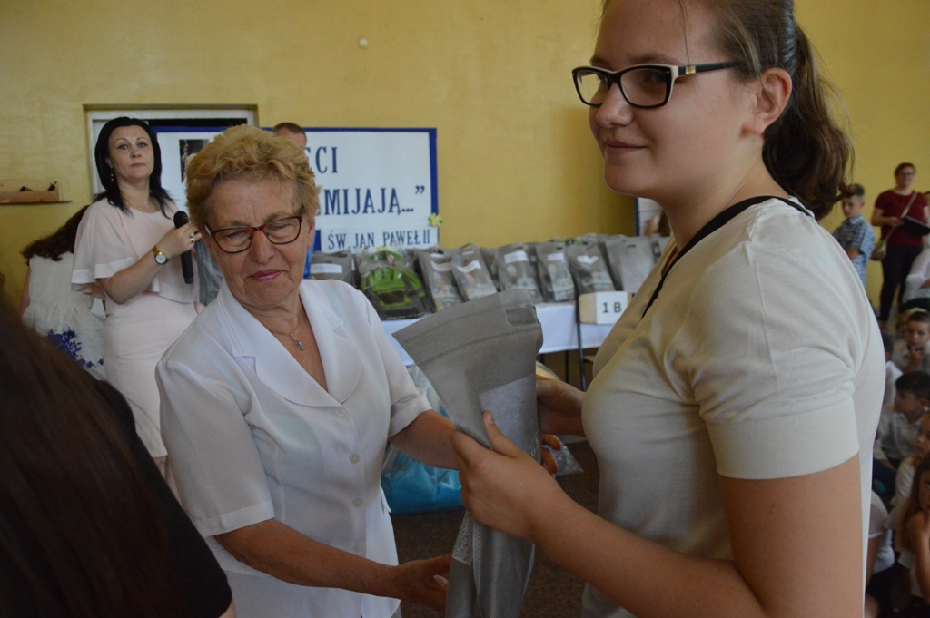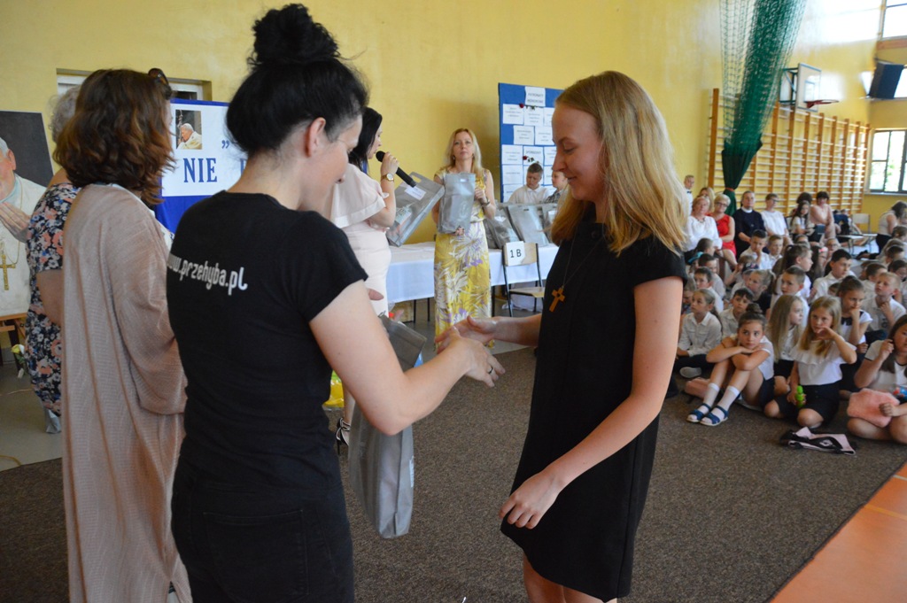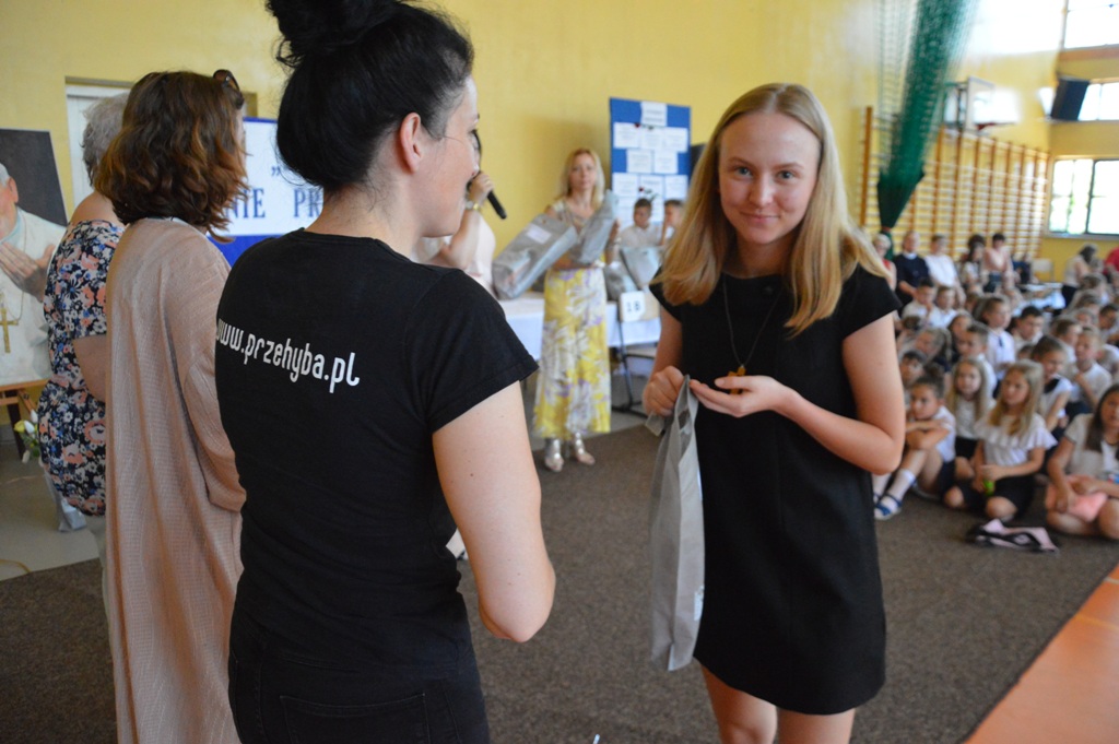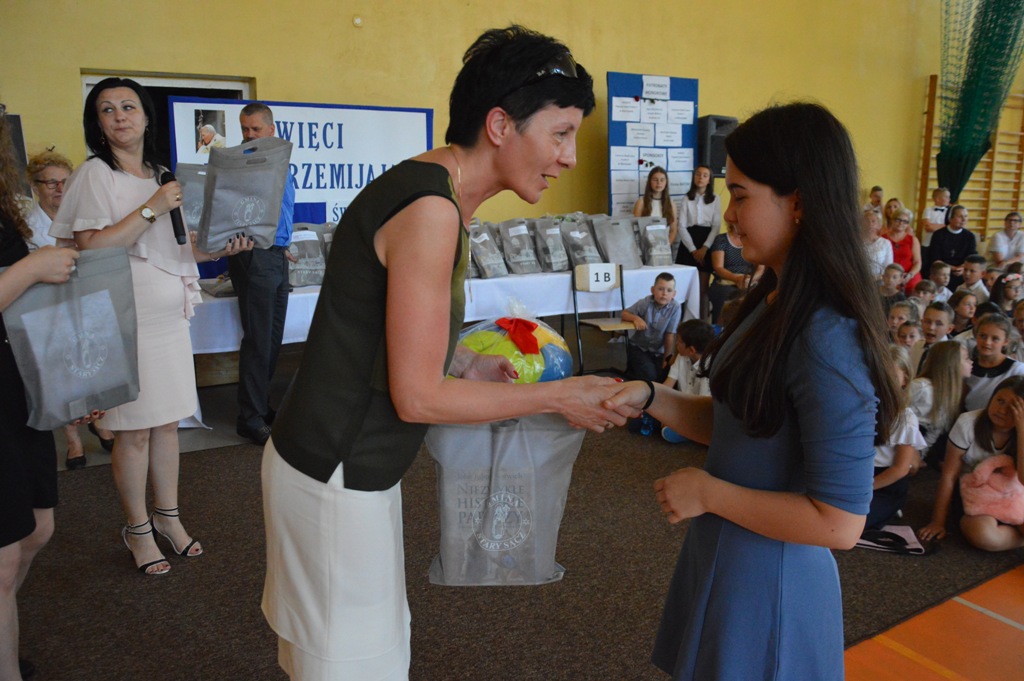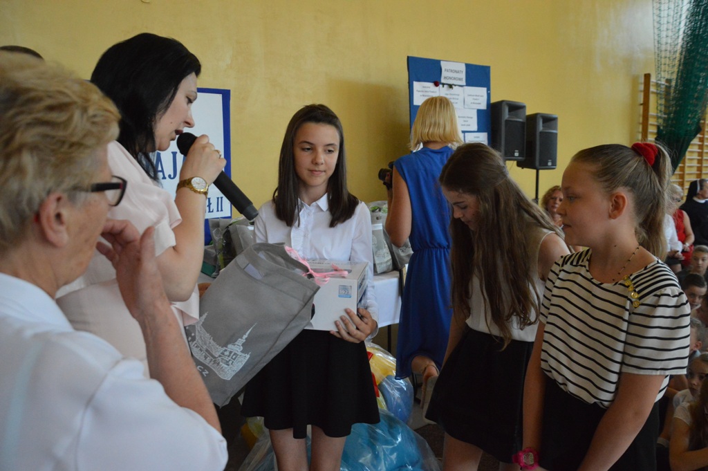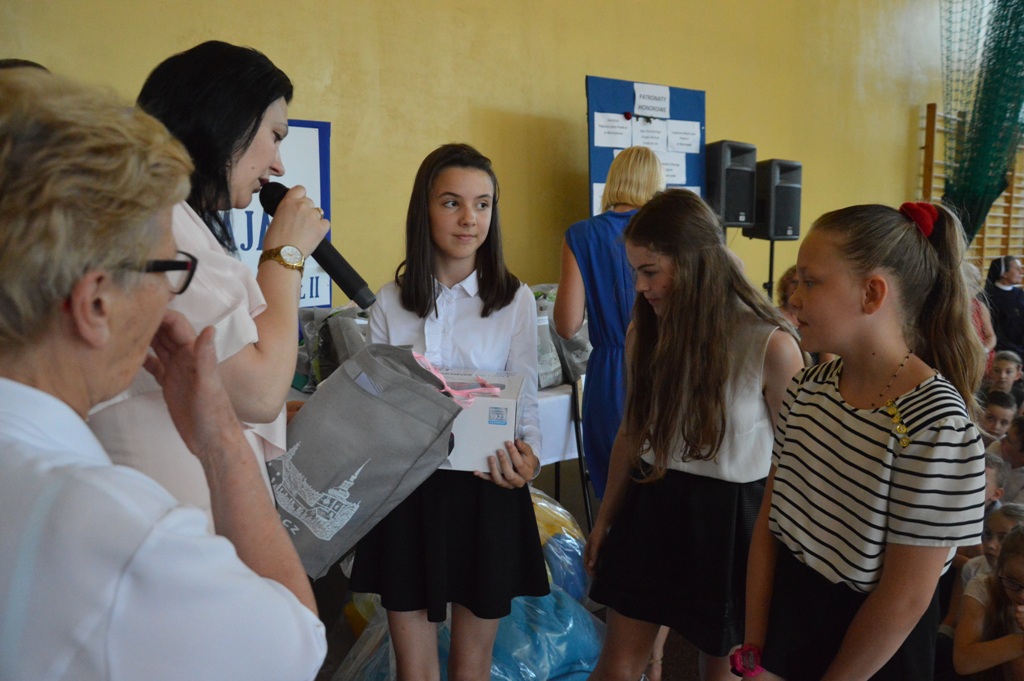 Na uroczystości była obecna także pani Katarzyna Bielak -Wójtowicz ze Schroniska PTTK na Przehybie, która osobiście wręczyła nagrody specjalne w imieniu pani Olgi Bielak – fundatora głównych nagród specjalnych dla laureatów konkursu w części „Powtórka z geografii”- forma albumowa- trasa turystyczna szlakiem Jana Pawła II.