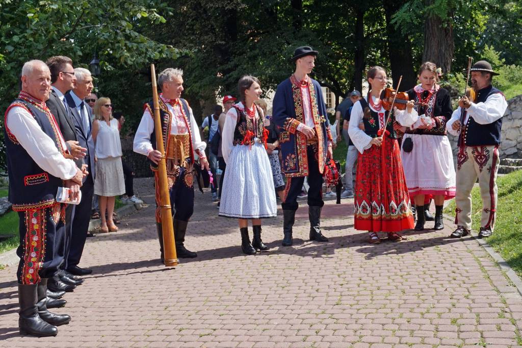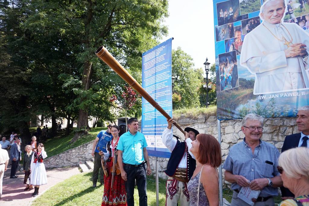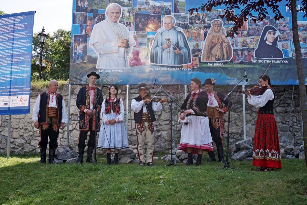 Uroczystość rozpoczęła się mszą świętą w kościele parafialnym pw. św Klemensa. Oprawę liturgii stanowiła muzyka Wojciecha Boguckiego z Podegrodzia, który wystąpił z córką Alicją, studentką konserwatorium w Katowicach Czytania mszalne czytali młodzi goście z Podegrodzia: Julia Obrzut i Wojtek Maciuszek. Miasto Wieliczkę na otwarciu wystawy reprezentował zastępca burmistrza Rafał Ślęczka.