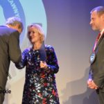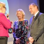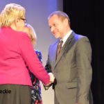 Zofia Wcisło, prezes Stowarzyszenia, Wojciech Lasek i Anna Górz, wręczyli dyrekcji szkoły: Grzegorzowi Garwolowi i Wandzie Kochanowicz -medal opatrzony cytatem „Człowiek jest wielki nie przez to, co ma, nie przez to kim jest, lecz przez to, czym dzieli się z innymi” (Jan Paweł II).
