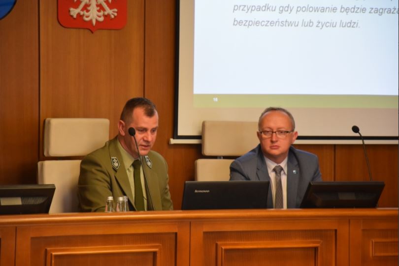 Spotkanie otworzył burmistrz Jacek Lelek, podkreślając przede wszystkim konieczność współpracy pomiędzy nadleśnictwem, rolnikami oraz łowczymi i konieczność maksymalnie skróconego czasu postępowania odszkodowawczego, by rolnicy mogli jak najszybciej zlikwidować powstałe szkody. Spotkanie poprowadził nadleśniczy Paweł Szczygieł, który nakreślił ramy współpracy przy szacowaniu szkód oraz niezbędne do tego procedury. Konieczność szacowania szkód łowieckich, według nowej ustawy, kieruje ten obowiązek na przedstawicieli gminy (sołtysów oraz przewodniczących osiedli) oraz osoby z kół łowieckich, którzy w ramach komisji szacujących dokonują oględzin miejsca powstania szkody, konsultują z rolnikami sposób likwidacji, oraz sporządzają odpowiednią dokumentację z przeprowadzonego w terenie postępowania.