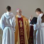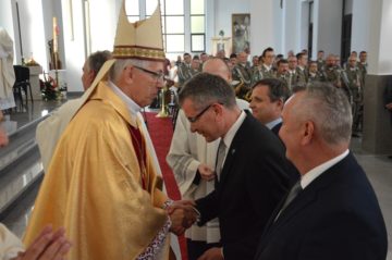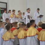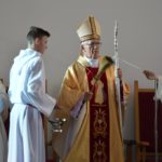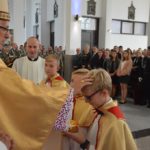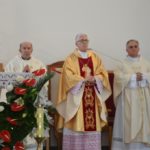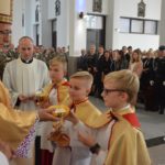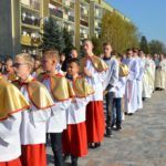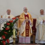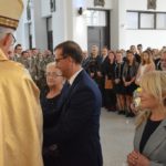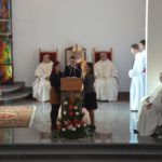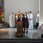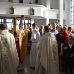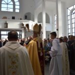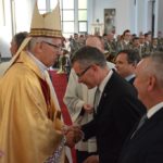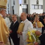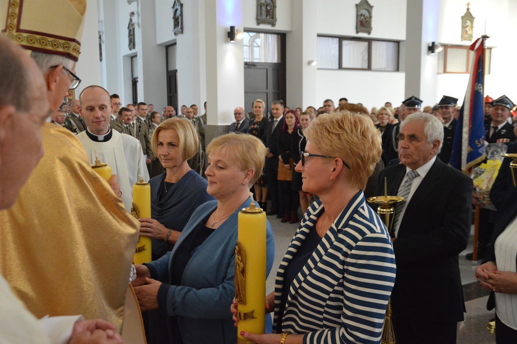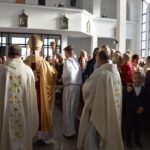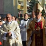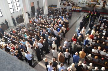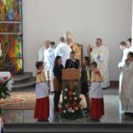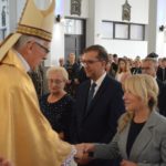 –Dziękuje za kościół materialny, który zbudowaliście i dziękuje za kościół duchowy, który tworzycie –mówił do zgromadzonych abp Wiktor Skworc –serdecznie pozdrawiam całe rodziny, które dzisiaj uczestniczą w tej Mszy św. To podstawowa katecheza rodzinna. Dziękuje, bo tylko ręce złożone do modlitwy mogą nauczyć szacunku do Pana Boga. (…) W 2003 roku poświęciliśmy plac pod budowę tej świątyni. Pragnę wszystkim podziękować, że wzięliście udział w tym trudzie budowy. Każdy z Was miał materiał do budowania tej świątyni. Dla jednych była to modlitwa, dla innych praca na budowie czy dar materialny. Tak się buduje kościół. Dziękuje Waszemu budowniczemu, ks Januszowi. On był dobrym duchem tej budowy. On Was jednoczył, prowadził i przekonywał w chwilach zwątpienia, że wspólnie „damy radę” (…)