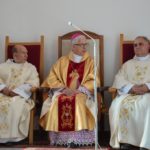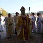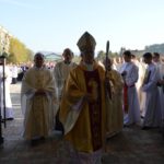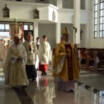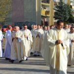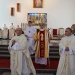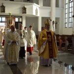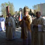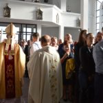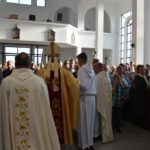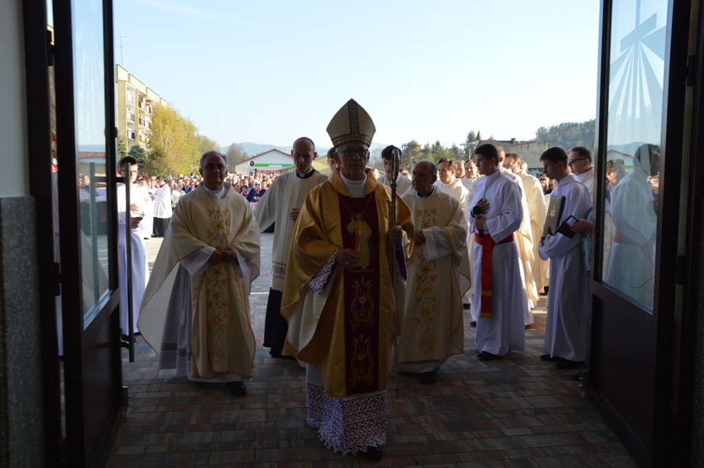 Mszy Świętej przewodniczył abp Wiktor Skworc, ten sam, który 19.04.2009 roku dokonał aktu wmurowania kamienia węgielnego pod budowę kościoła. Kamień węgielny poświęcił 28 maja 2006 roku Ojciec Św. Benedykt XVI w Krakowie.