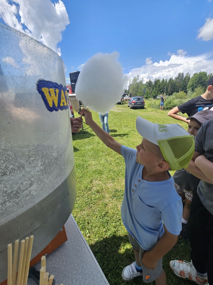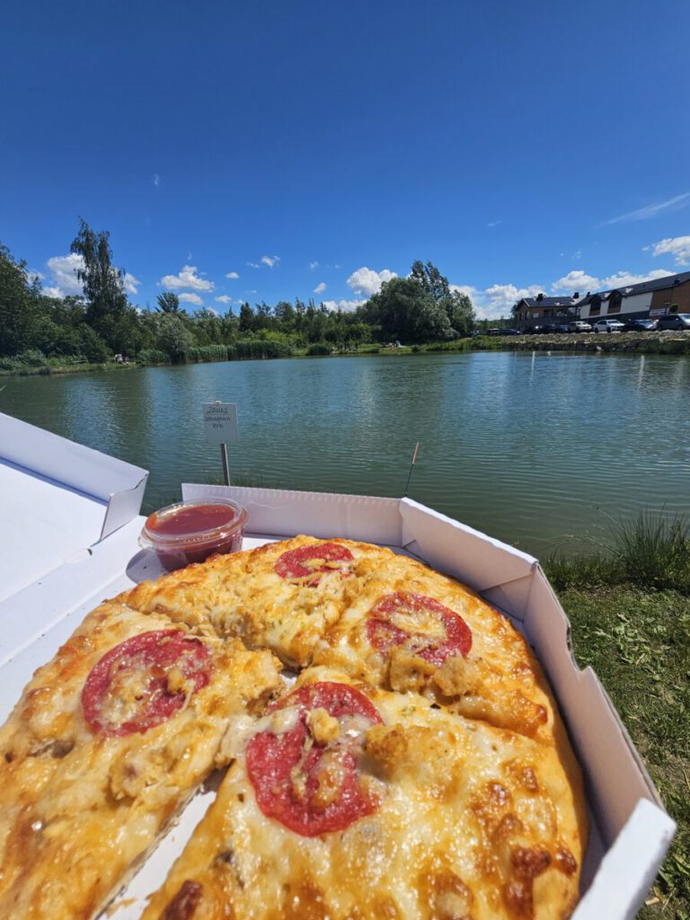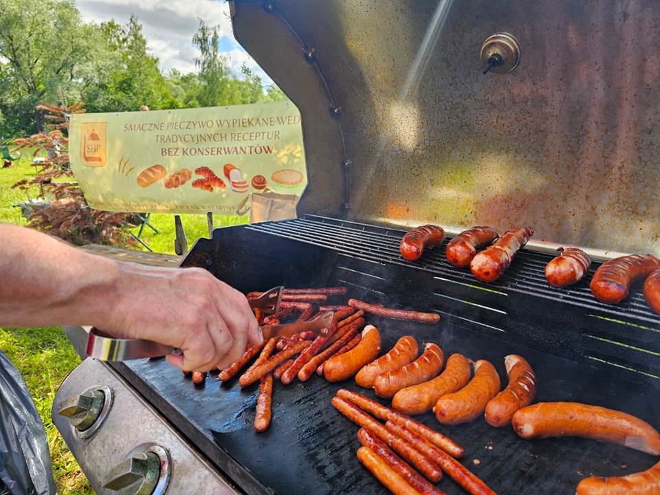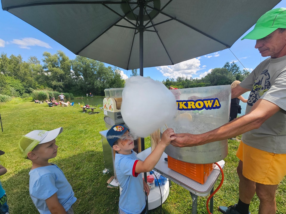 Wystartowaliśmy punktualnie o 9:30. Każdy wyposażony w wędki usadowił się na swoim stanowisku. Pogoda nas bardzo rozpieszczała. Schładzały nas pyszne lody. W drugim końcu stawu Sądecki Karp Klub serwował kiełbaski, pizzę i watę cukrową. Nie zabrakło pysznego pieczywa i ciasteczek, które ufundowała Spółdzielnia Handlowo-Produkcyjna Rolnik. Czyli to co tygryski lubią najbardziej, zwłaszcza na łowach.