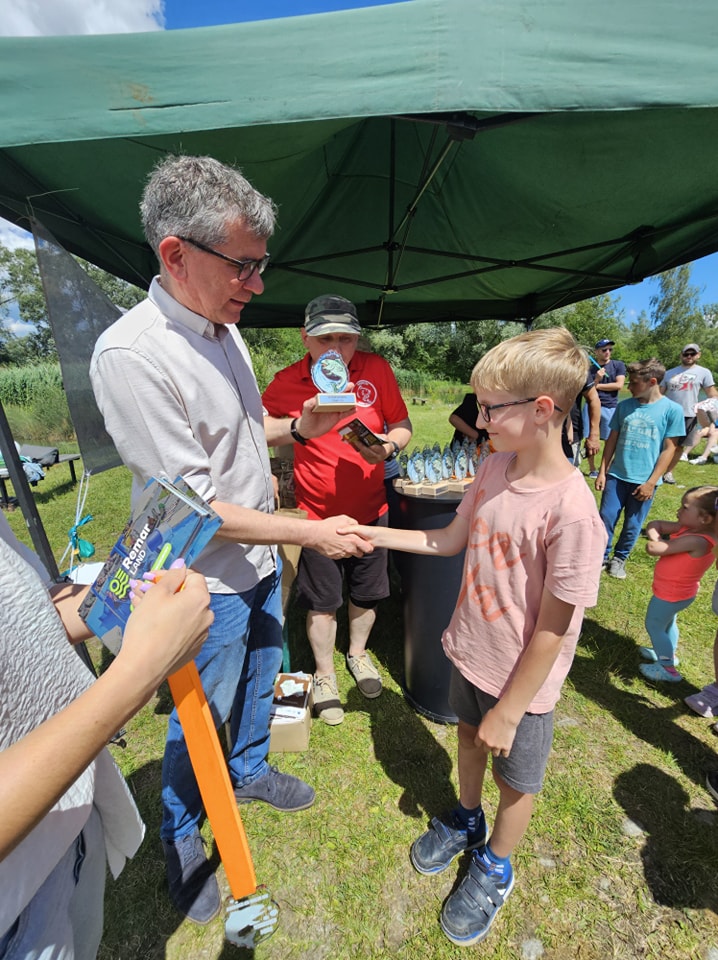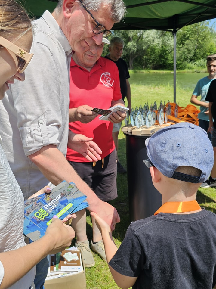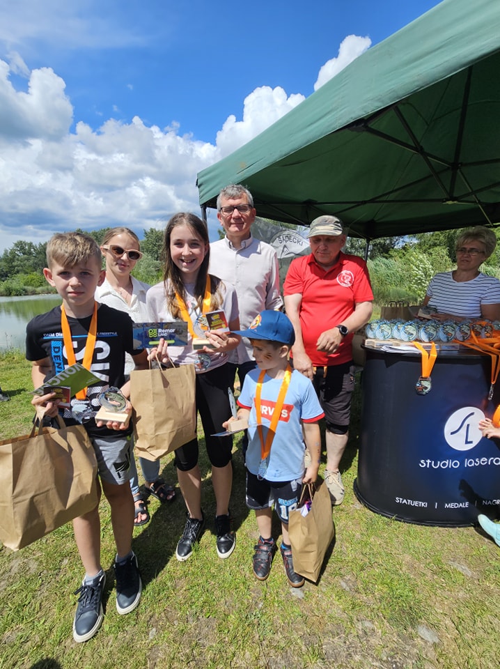 Piękne puchary, medale wykonane i ufundowane przez Studio Lasera i nagrody ufundowane przez Sądecki Karp Klub wręczał burmistrz Starego Sącza pan Jacek Lelek, prezes Sądeckiego Karp Klubu Jacek Mamala oraz prezeska Starosądeckiego Centrum Rekreacji RemarLand pani Kamila Bieryt. Firma RemarLand ufundowała dla dzieci niezwykłą atrakcję: całodniowe vouchery na zabawę w Aquaparku (!) na Stawach. Radości nie było końca. Dodatkowo firma LEMUR ufundowała 20% zniżki na park linowy.