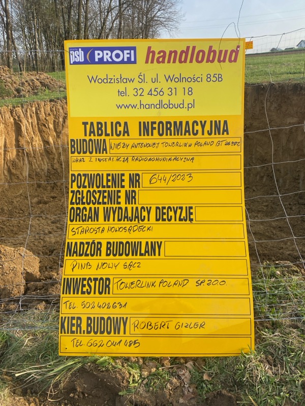 Nowa wieża antenowa stanie na prywatnej działce w Moszczenicy Niżnej. W dniu dziejszym rozpoczęły się pierwsze prace. Pozwolenie na budowę wydało Starostwo Powiatowe w czerwcu ubiegłego roku. Inwestorem jest firma Towerlink Poland sp.zo.o