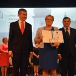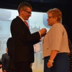 Dyrektor Szkoły w Gaboniu Elżbieta Kruczek, która w tym roku pożegnała się ze swoim stanowiskiem odebrała z rąk burmistrza Jacka Lelka i przewodniczącego Rady Miejskiej Andrzeja Stawiarskiego Honorową Odznakę Starego Sącza. Uroczysta sesja odbyła się w Kinie Sokół 20 lipca 2019 r.