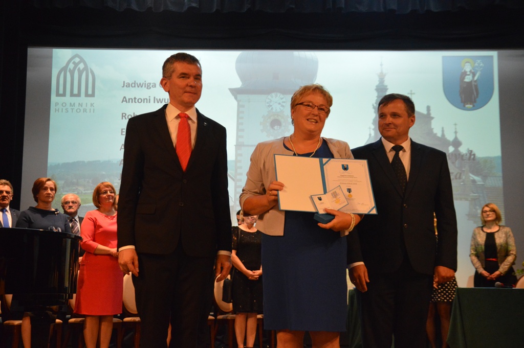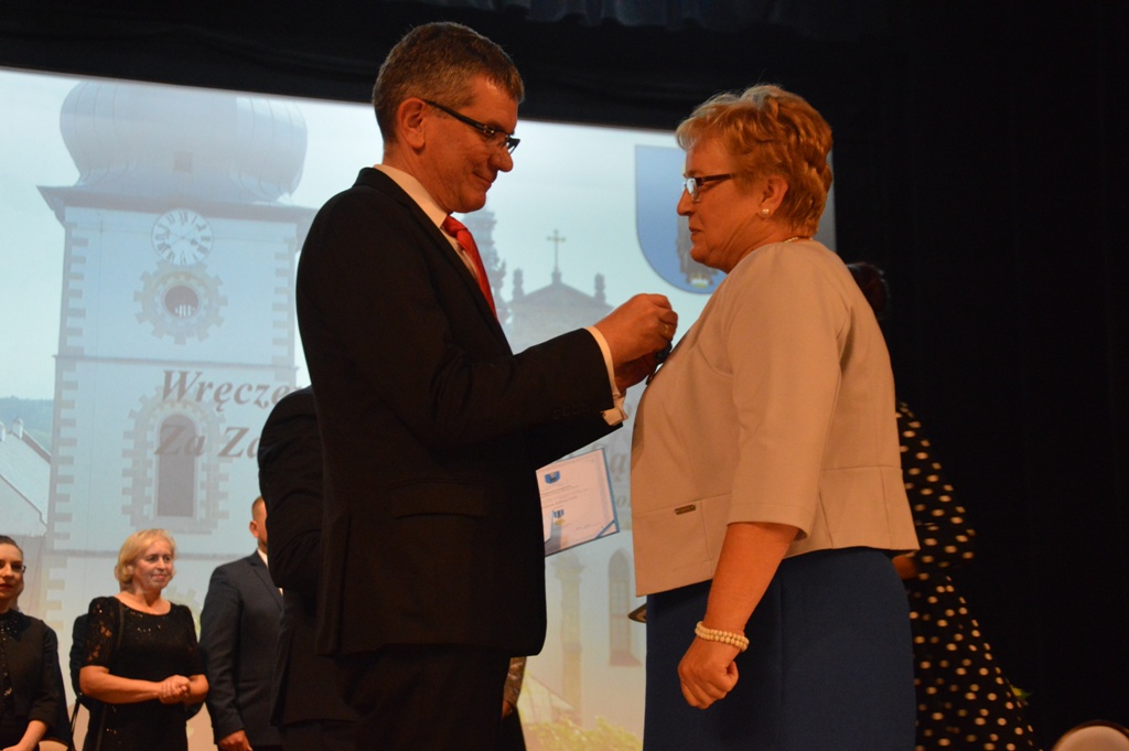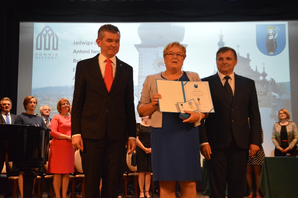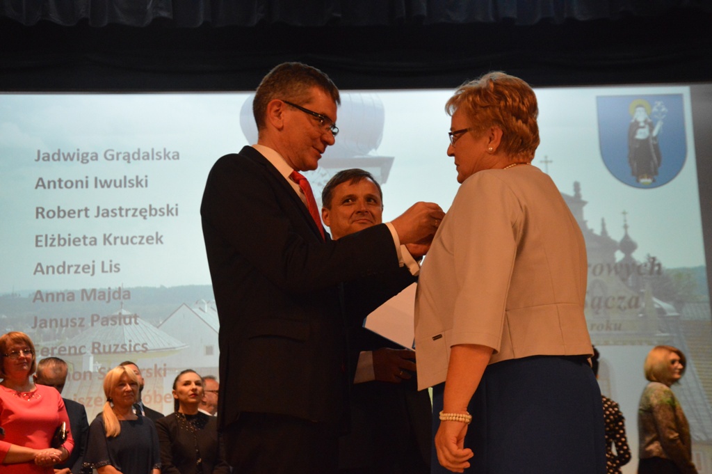 Dyrektor Szkoły w Gaboniu Elżbieta Kruczek, która w tym roku pożegnała się ze swoim stanowiskiem odebrała z rąk burmistrza Jacka Lelka i przewodniczącego Rady Miejskiej Andrzeja Stawiarskiego Honorową Odznakę Starego Sącza. Uroczysta sesja odbyła się w Kinie Sokół 20 lipca 2019 r.