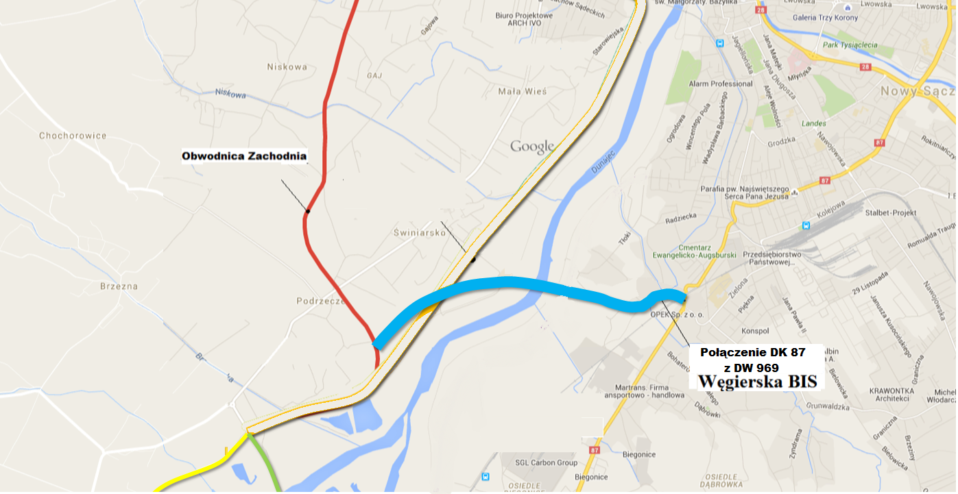 Rozstrzygnięto właśnie przetarg na wielowariantową koncepcję budowy połączenia drogi krajowej nr 87 z drogą wojewódzką nr 969 w Nowym Sączu. Dzięki temu już pod koniec przyszłego roku poznamy dokładny przebieg 3-kilometrowej trasy, która połączy drogę krajową nr 87 z obwodnicą Podegrodzia oraz miejscem budowy 700 metrowego mostu na Dunajcu.