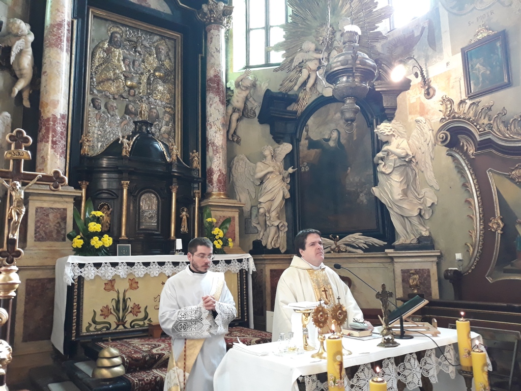 W Starym Sączu zwiedzanie zaczęło się od  Ołtarza Papieskiego, po czym  grupa udała się na rynek starosądecki. Goście wraz z  proporcem Stowarzyszenia przeszli do Klasztoru starosądeckiego. Tam pokłonili się Świętej Kindze i zapoznali się z historią klasztoru i kościoła . W imieniu Sióstr Klarysek oraz własnym delegację przywitał Ks. Kapelan Stanisław Śliwa, po czym odbyła się Msza Święta sprawowana przez Proboszcza Berhidy Zolta Beke w asyście Diakona Roberta. W słowie bożym ks. Beke zaznaczył, że pielgrzymka rozpoczęła się od jedynego na Węgrzech kościoła-kaplicy pw. świętej Kingi w Kungos.