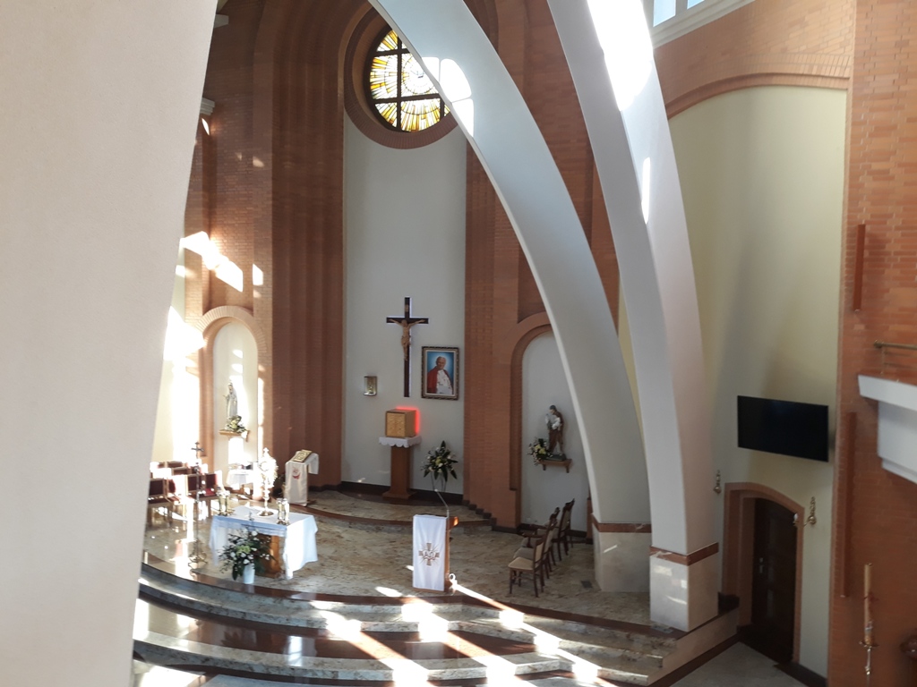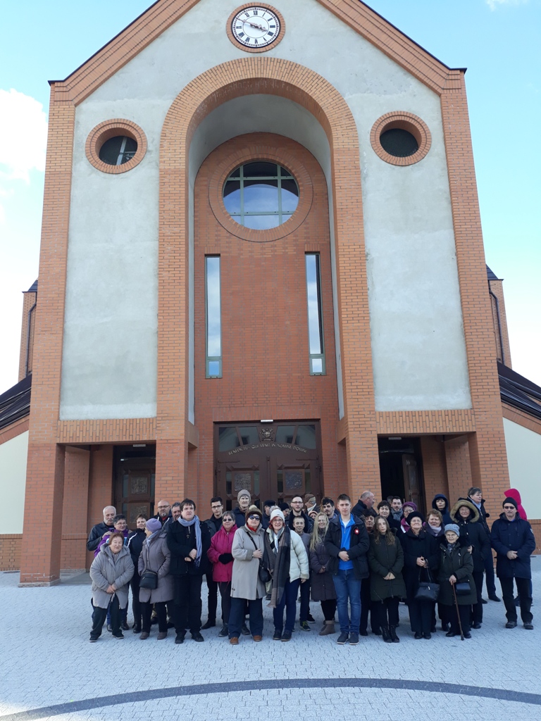 Delegacja była również zainteresowana zobaczeniem najnowszej świątyni w Nowym Sączu czyli kościoła  pw. Świętego Jana Pawła II . Ks. Zolt Beke podjął wraz z mieszkańcami swojej miejscowości dzieło  budowy jedynego kościoła – kaplicy pw. naszego rodaka w parafii Berhida.  Goście zapoznali się z historią życia Jana Pawła II przedstawioną  na drzwiach wejściowych.   Nasi goście, którzy podjęli trud budowy kaplicy pw. Jana Pawła II, jedynej takiej na Węgrzech, byli pod wrażeniem co do stylu i szybkości budowy kościoła. Ksiądz Zolt Beke gorliwie prosił przy relikwiach Jana Pawła II o jego wstawiennictwo podczas budowy dużo skromniejszej kaplicy.
