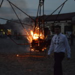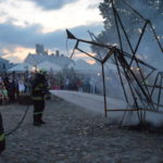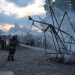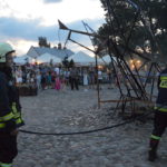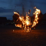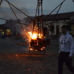 Jak zawsze dwutygodniowy Plener i Sympozjum zakończył się happeningiem na starosądeckim rynku. Tym razem spłonął FENIKS. Nocne spalenie jednego z dzieł powstałych podczas pleneru to tradycja imprezy. W płomieniach zginął wielki feniks. Był to ognisty finał imprezy z udziałem starosądeczan…i druhów z miejscowej OSP, którzy czynnie uczestniczyli w performansie.
