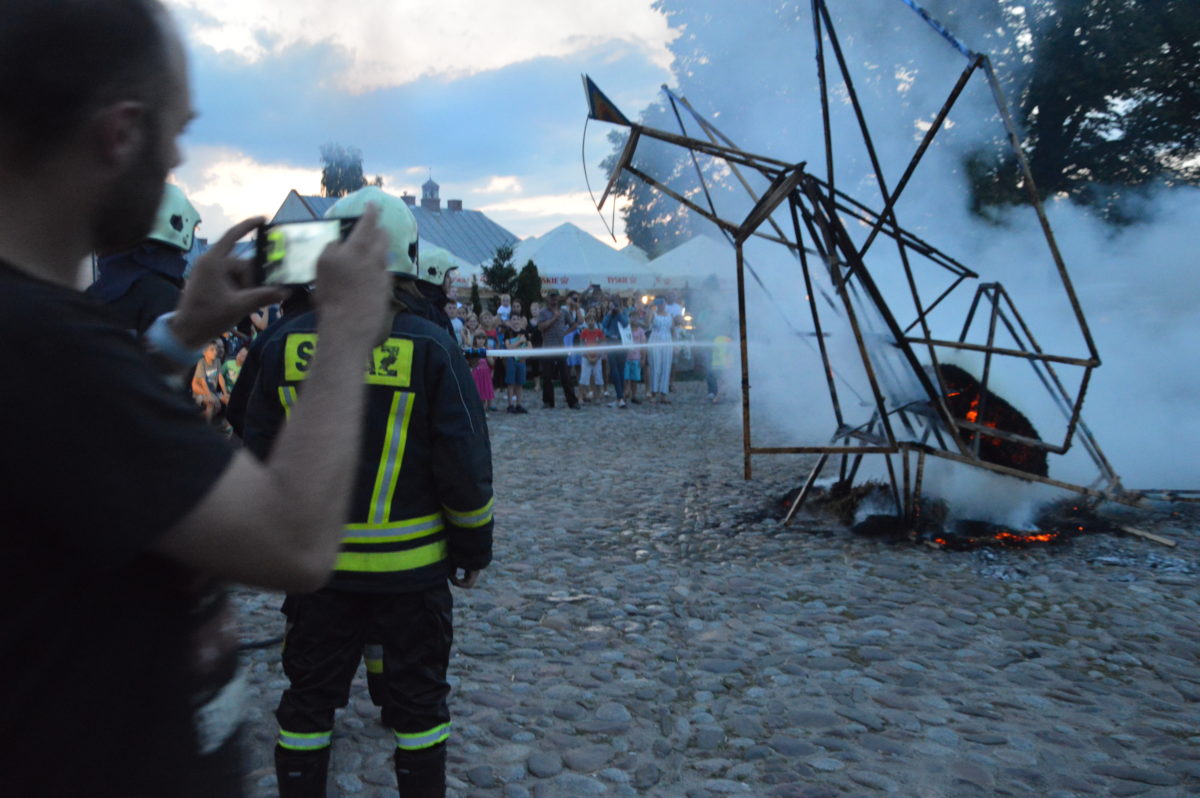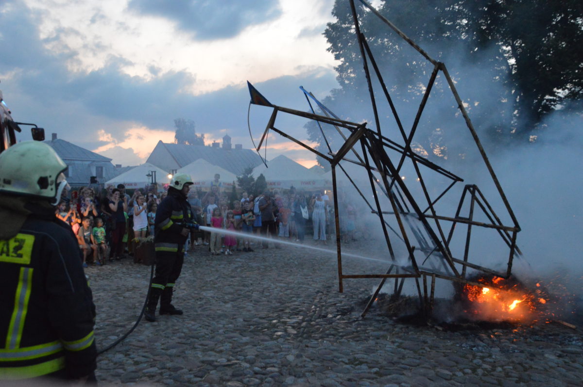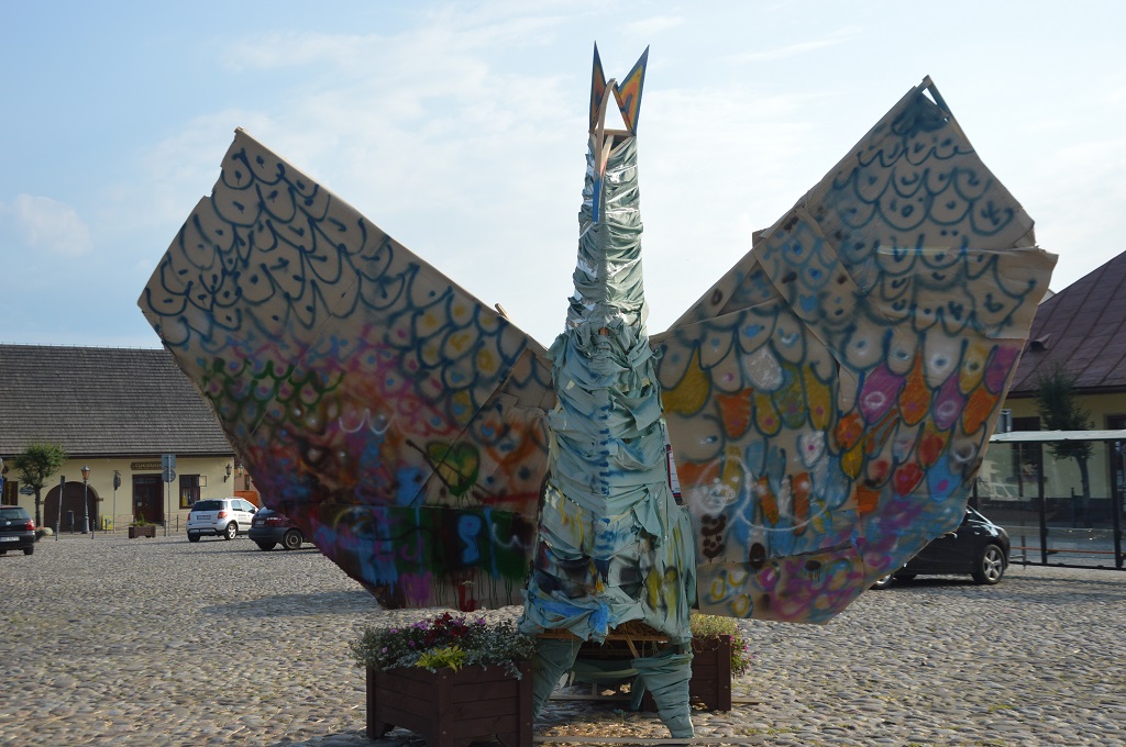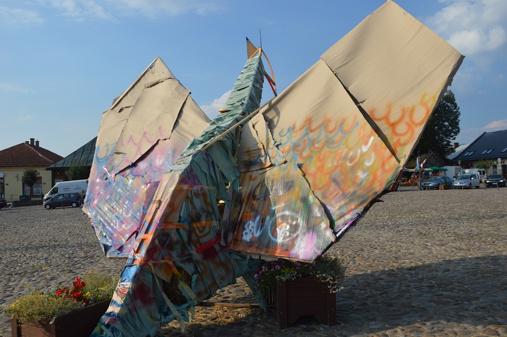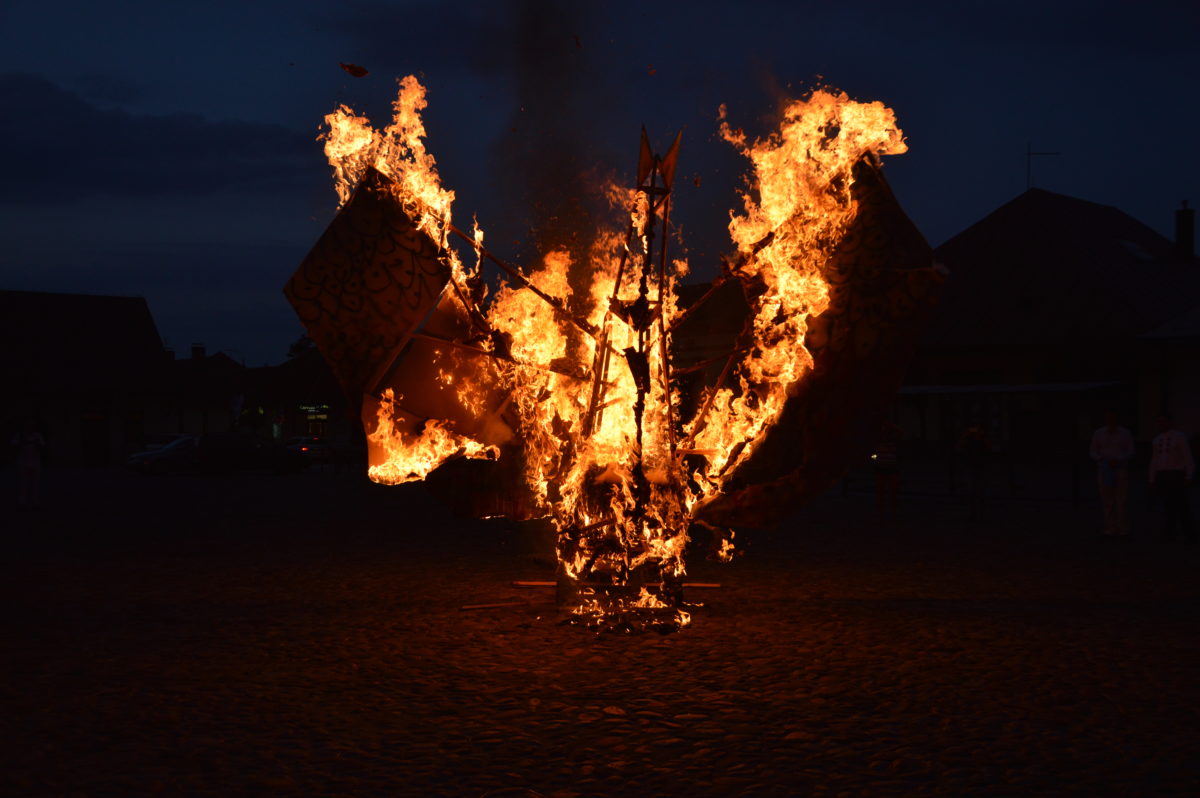 Jak zawsze dwutygodniowy Plener i Sympozjum zakończył się happeningiem na starosądeckim rynku. Tym razem spłonął FENIKS. Nocne spalenie jednego z dzieł powstałych podczas pleneru to tradycja imprezy. W płomieniach zginął wielki feniks. Był to ognisty finał imprezy z udziałem starosądeczan…i druhów z miejscowej OSP, którzy czynnie uczestniczyli w performansie.