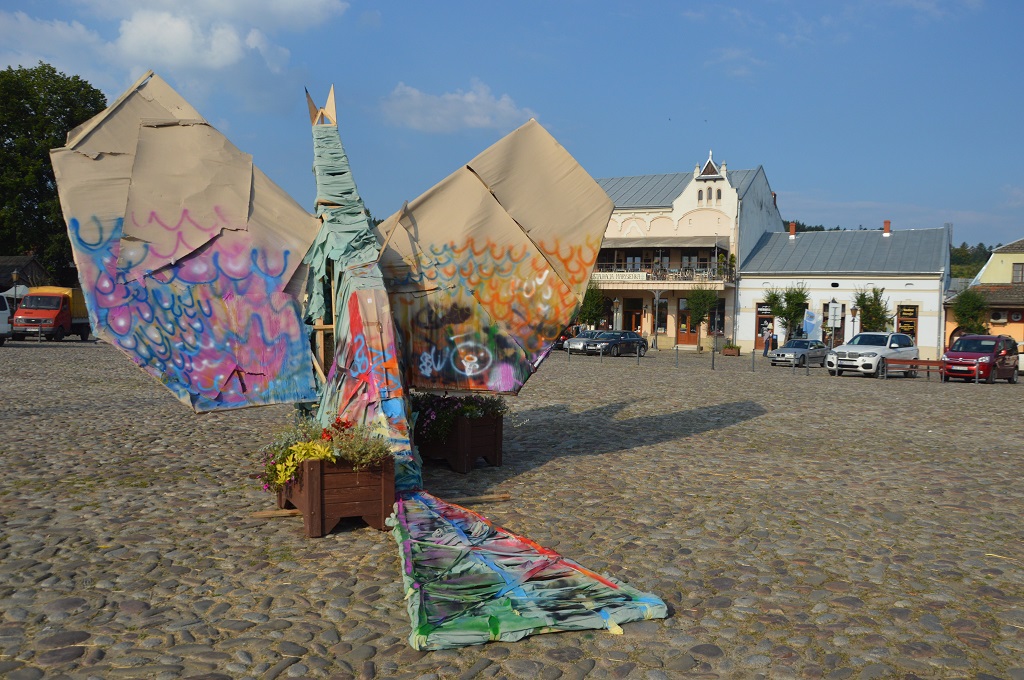 Wernisaż w starosądeckiej Bibliotece i happening na starosądeckim rynku podczas którego spłonął „feniks” był mocnym końcowym akordem XIV Międzynarodowego Pleneru Malarskiego -Sympozjum Kultur Lokalnych.
