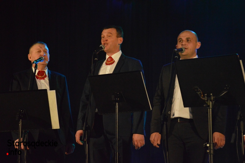 W sali widowiskowej zgromadziły się  tłumy mieszkańców i gości, sympatyków tej popularnej grupy wokalnej. Panowie zamienili stroje ludowe, w których zawsze występują, na garnitury. Zachowali jednak jeden element ludowy – cioski. Na scenie występowały także Podegrodzkie Dziopy, które też zamieniły tradycyjny strój na czarne sukienki i czerwone korale.