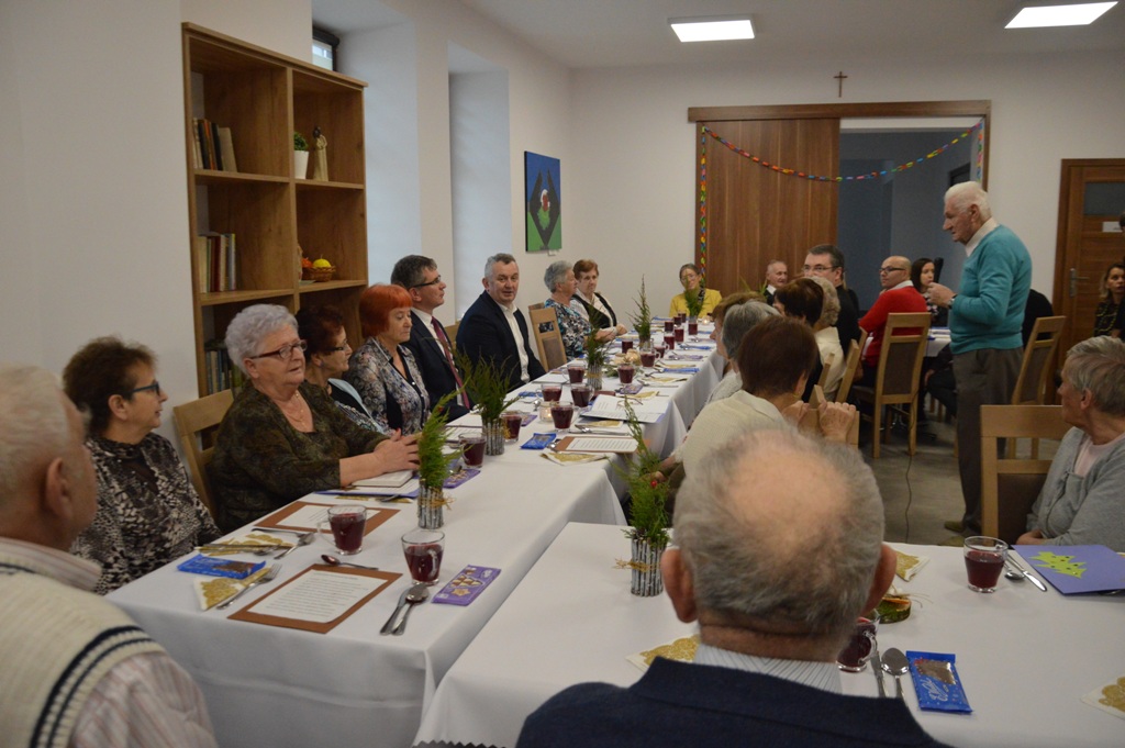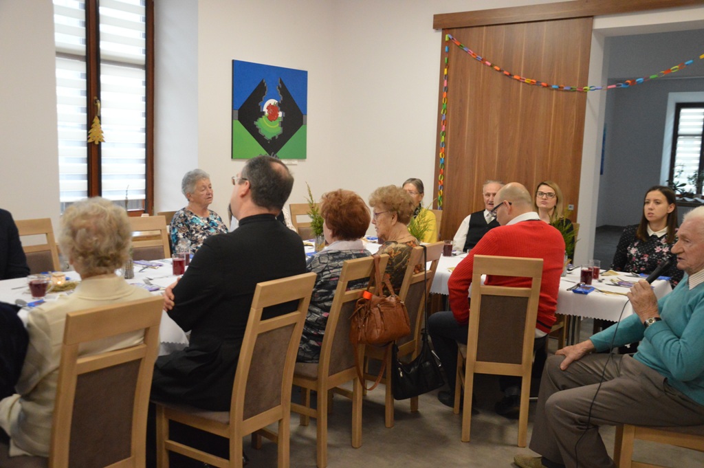 Po wspólnej modlitwie łamano się opłatkiem i składano bożonarodzeniowe życzenia. Na stołach nie zabrakło tradycyjnych potraw wigilijnych. Spotkanie upłynęło w uroczystej atmosferze wprowadzając wszystkich w przedświąteczny, radosny nastrój.