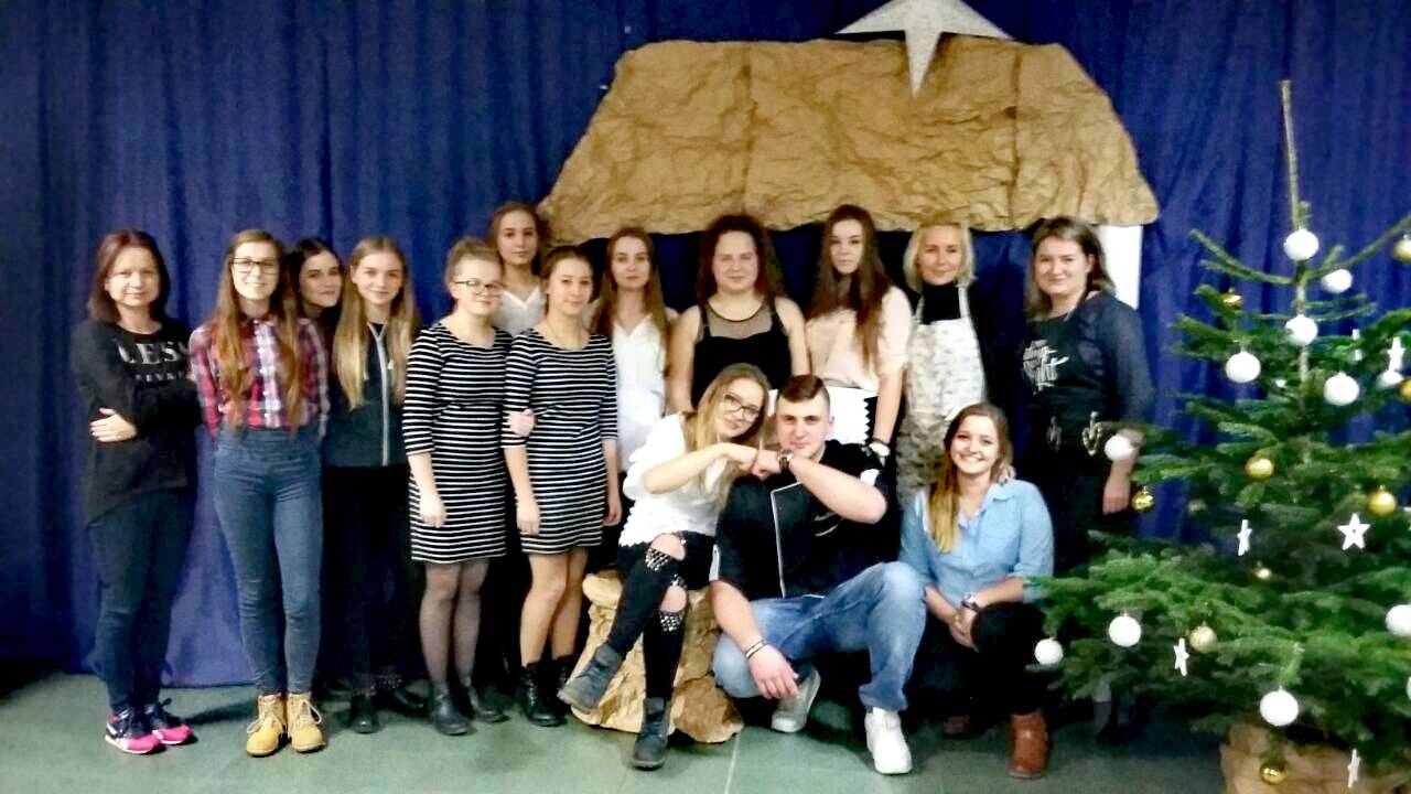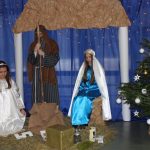 Zatem do szopki przybyli również uczniowie, babcia z wnuczkiem, a także rodzic i nauczyciel, aby powierzyć swoje problemy nowonarodzonemu Jezusowi. Po wspólnym kolędowaniu seniorzy mieli okazję połamać się opłatkiem oraz zjeść świąteczny posiłek. Wolontariusze starali się, aby ten czas upłynął w atmosferze miłości i wzajemnej życzliwości. Dzięki obecności zespołu muzycznego z Zespołu Szkół Ponadgimnazjalnych , który uświetnił ten wigilijny wieczór, kolędowaniu nie było końca.