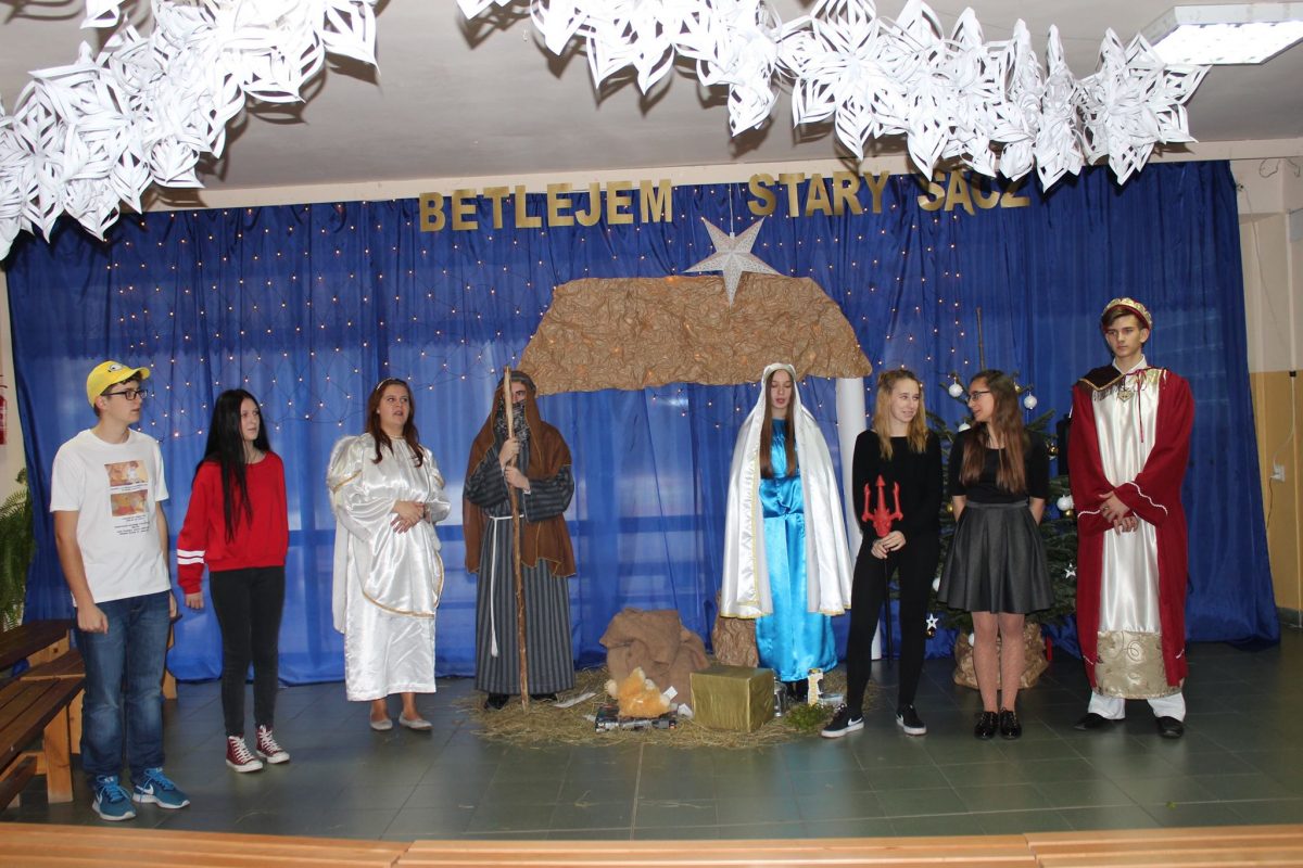 W uroczystości wzięło udział 70 seniorów ze Starego Sącza i okolic. W świątecznej scenerii, goście mogli obejrzeć zdjęcia z poprzednich lat. Specjalnie na tę okazję młodzież liceum przygotowała jasełka pod tytułem „Z narodzeniem Jezusa było tak …”. Krótka inscenizacja przedstawiająca tradycyjne scenki z jasełek, takie jak pokłon Trzech Króli, pasterzy, została wzbogacona o przykłady z życia współczesnego, polskie kolędy i przeniesiona w realia starosądeckie. „Współcześnie Betlejem znajdziemy tam, gdzie nikt się nie spodziewa – powiedział narrator – w domu, w szkole, w drugim człowieku. Wszędzie rodzi się Chrystus. Tylko czy my Go zauważamy?”